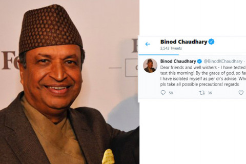 उद्योगीपती विनोद चौधरीलाई कोरोना संक्रमण पुष्टि भएको छ। चौधरीले सामाजिक सञ्जाल ट्वीटरमा आफू संक्रमित भएको जानकारी दिएका हुन्। संक्रमित भए पनि कोरोनाको कुनै लक्षण नदेखिएको उनले बताएका छन्।