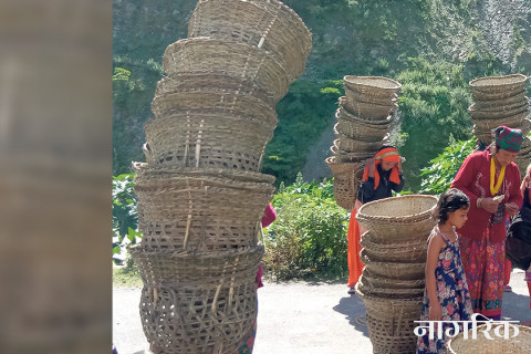‘घरमा एक मुठ्ठी अन्न छैन, खेतबारीमा लगाएको धान, कोदो र मैकै पाक्ने समय भएको छैन। किन्नलाई पैसा छैन, साहुले उधारो दिँदैनन्,’ कोरोना भारइसभन्दा ठूलो भोक ठानेर रोगको प्रवाह नगरी आफ्नै हातले बुनेका डोका बोक्दै घर दैलोमा बेच्न हिँडेको मष्टा गाउँपालिका–२ तुतिकी ४३ धनसारा बोहराको दुखेसो छ, ‘कोरोना लागेर मान्छे मरेको खबर नसुनेको पनि होइन।
