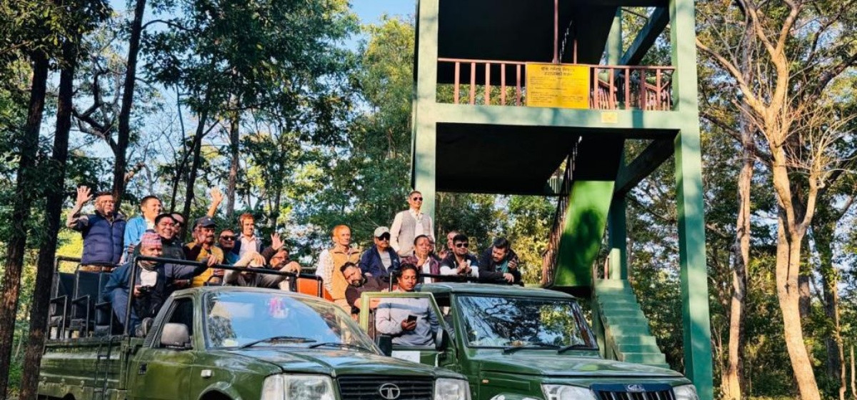 बाँके राष्ट्रिय निकुञ्जभित्र हालै जंगल सफारी गर्न पुगेका पर्यटक।