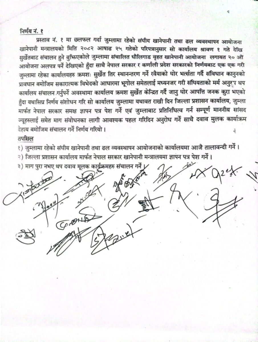 उनीहरूले जुम्लाबाट प्रतिनिधित्व गर्ने संघीय सांसदहरूलाई समेत निर्णय फिर्ता गराउन आवश्यक दबाब सिर्जना गर्न अनुरोध गरेका छन्।