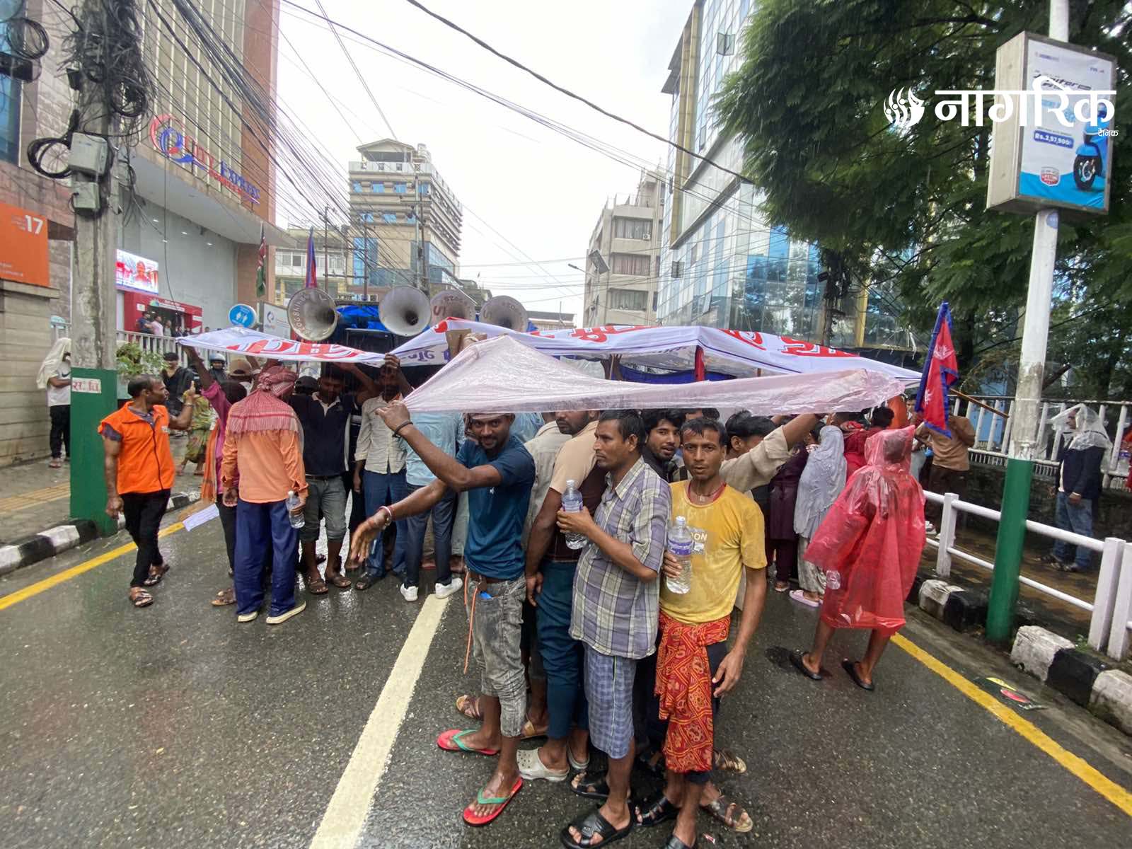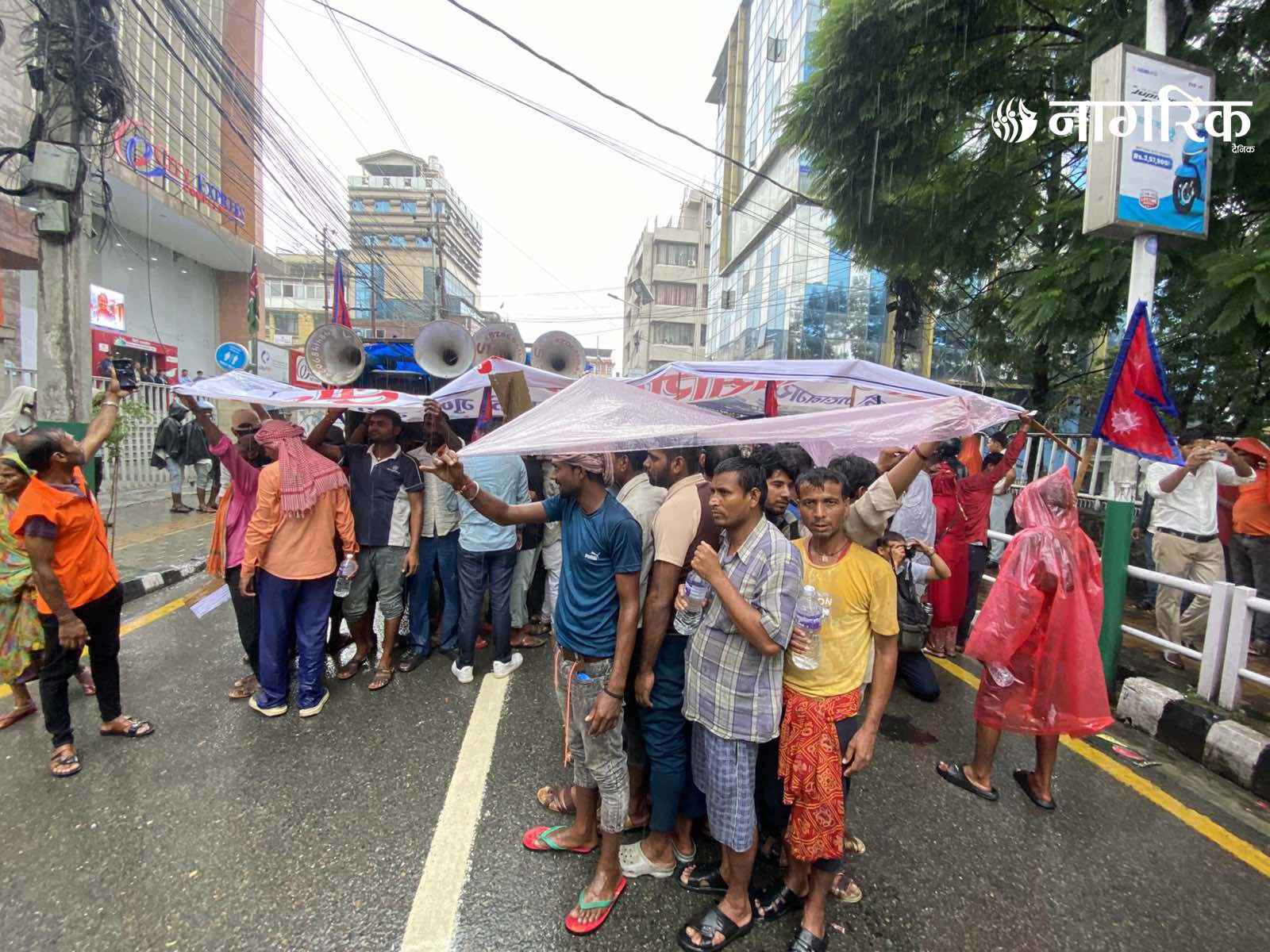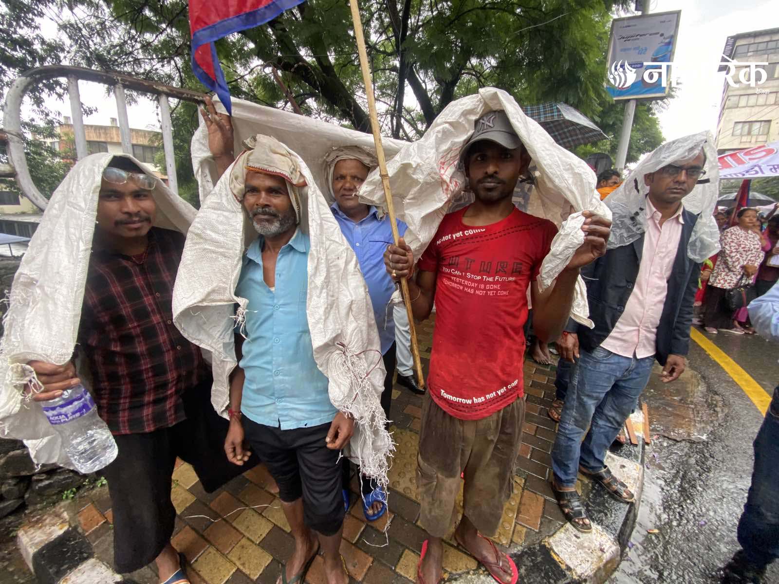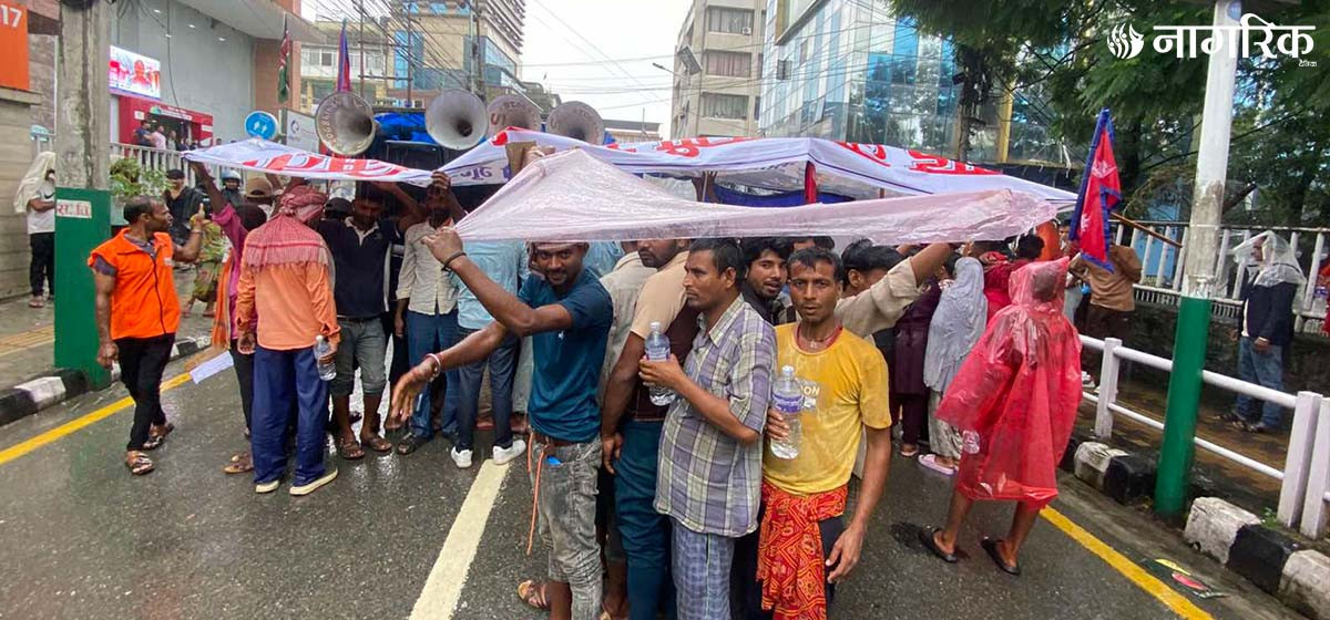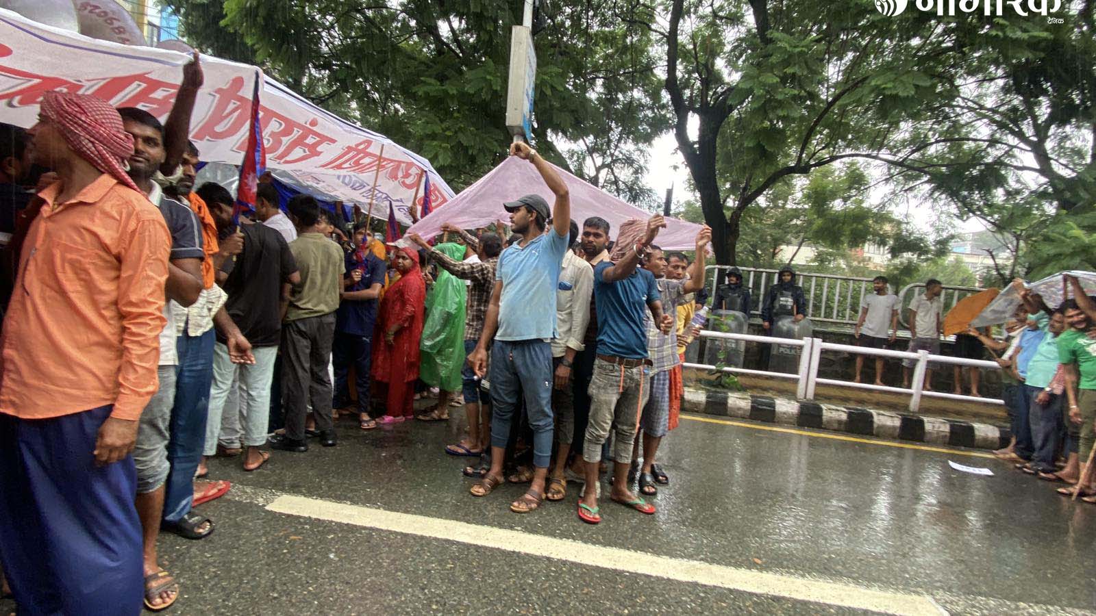 बिहीबार बिहानैदेखि परेको झरीको समेत पर्वाह नगरी उनीहरूले प्लास्टिक ओढेर महानगर कार्यालय घेराउ गर्दै नाराबाजी चर्काएका हुन्।