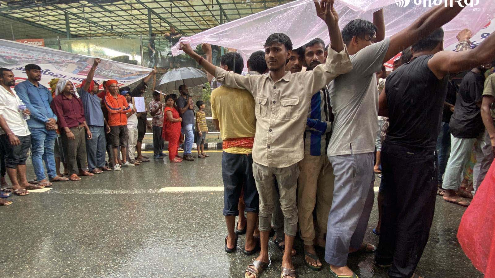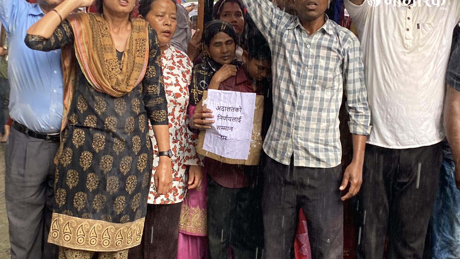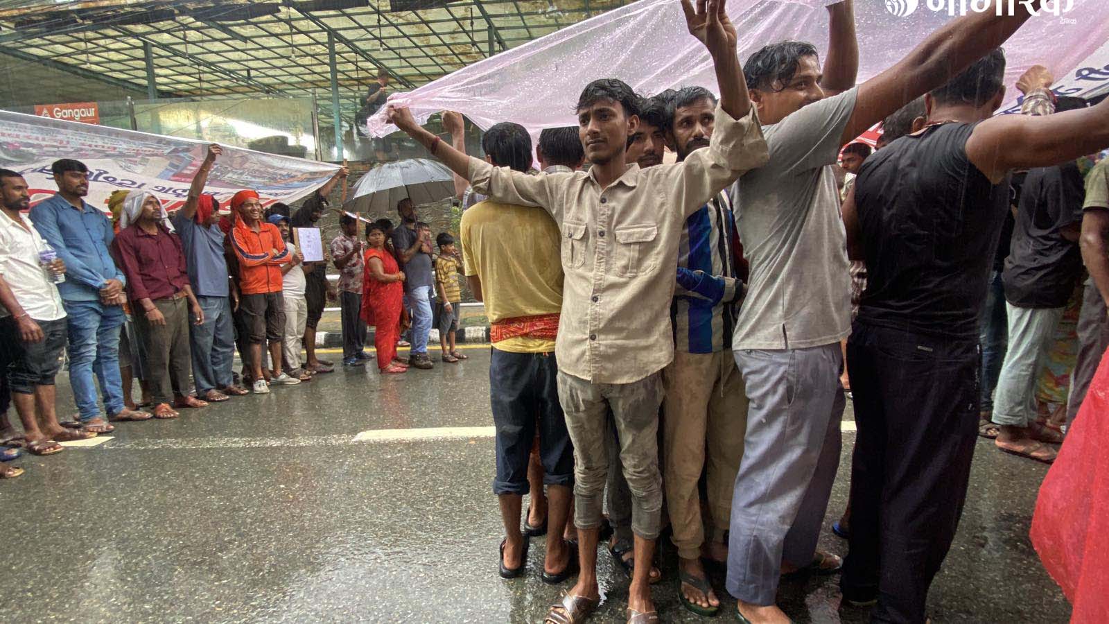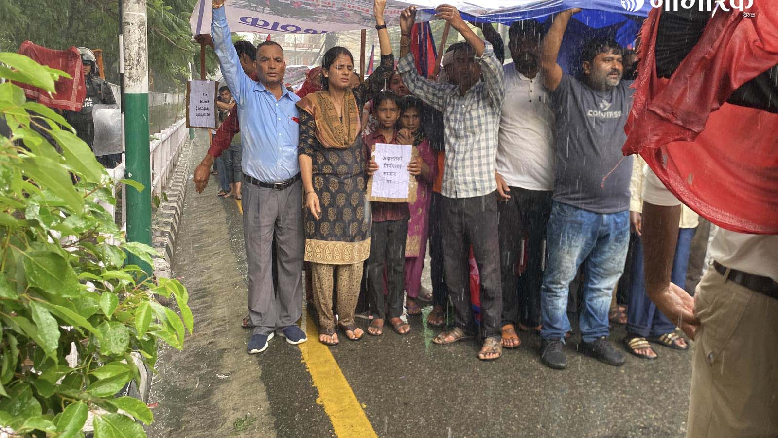 बिहीबार बिहानैदेखि परेको झरीको समेत पर्वाह नगरी उनीहरूले प्लास्टिक ओढेर महानगर कार्यालय घेराउ गर्दै नाराबाजी चर्काएका हुन्।