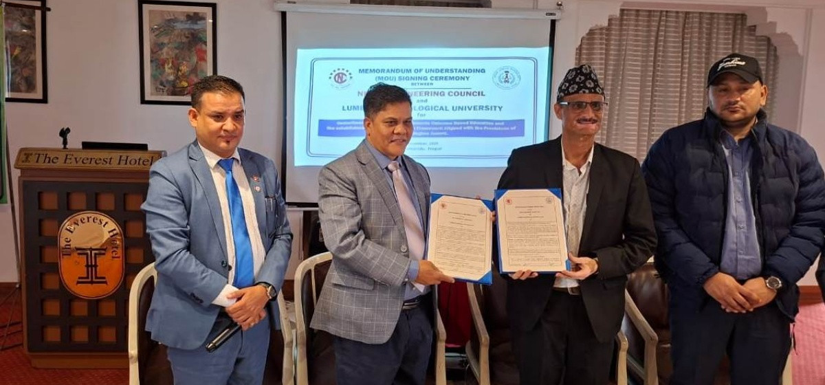 लुम्बिनी प्राविधिक विश्वविद्यालय र नेपाल इन्जिनियरिङ परिषदबिच सम्झौता पत्रमा हस्ताक्षर भएको हो। विश्वविद्यालयको तर्फबाट उपकुलपति प्रा.डा. विनोदप्रसाद ढकाल र परिषद्का अध्यक्ष प्रा.डा. पद्मबहादुर शाहीले सम्झौता पत्रमा हस्ताक्षर गरे।