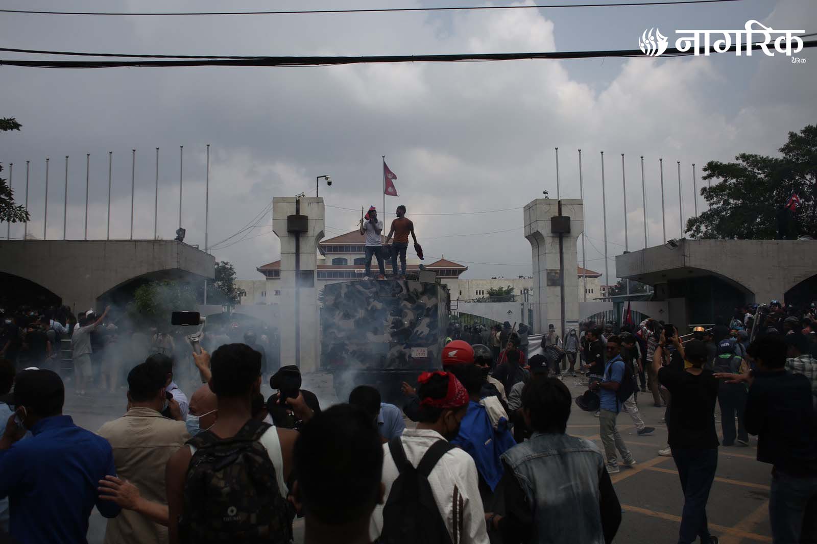 जेन-जीले गरेको आन्दोलनका क्रममा बानेश्वर क्षेत्र तनावग्रस्त बनेको छ ।