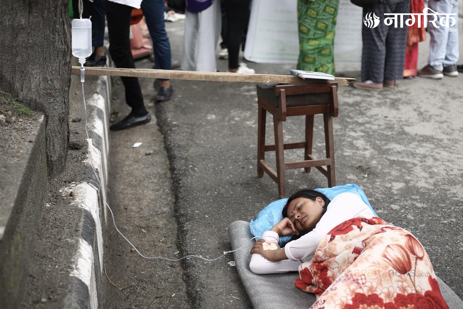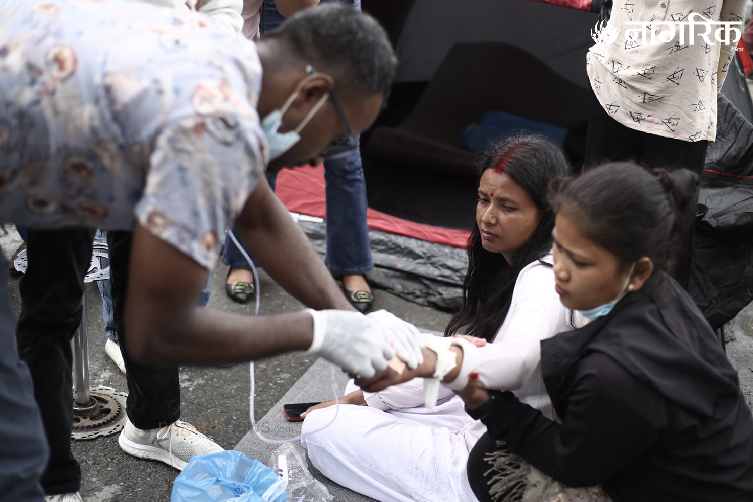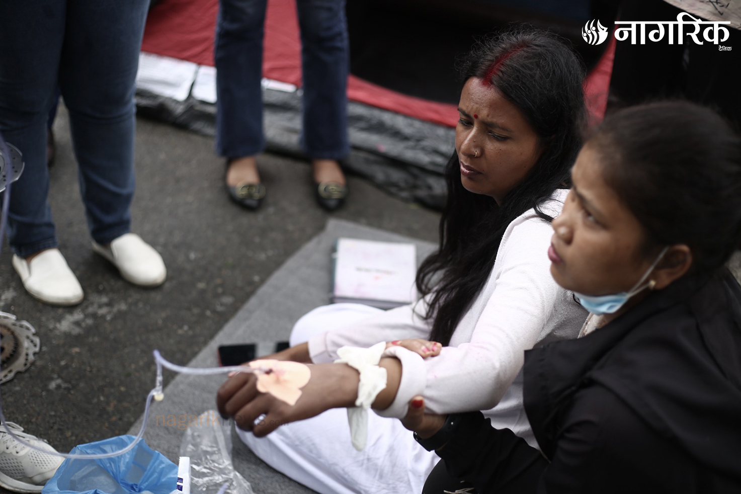 चार दिनदेखि काठमाडौंको माइतीघर मण्डलामा अनशनरत उनको स्वास्थ्यमा समस्या देखिएपछि सडकमै सलाइन पानी चढाएर उपचार थालिएको छ।