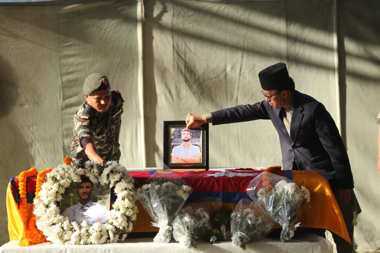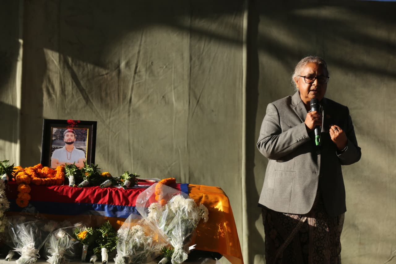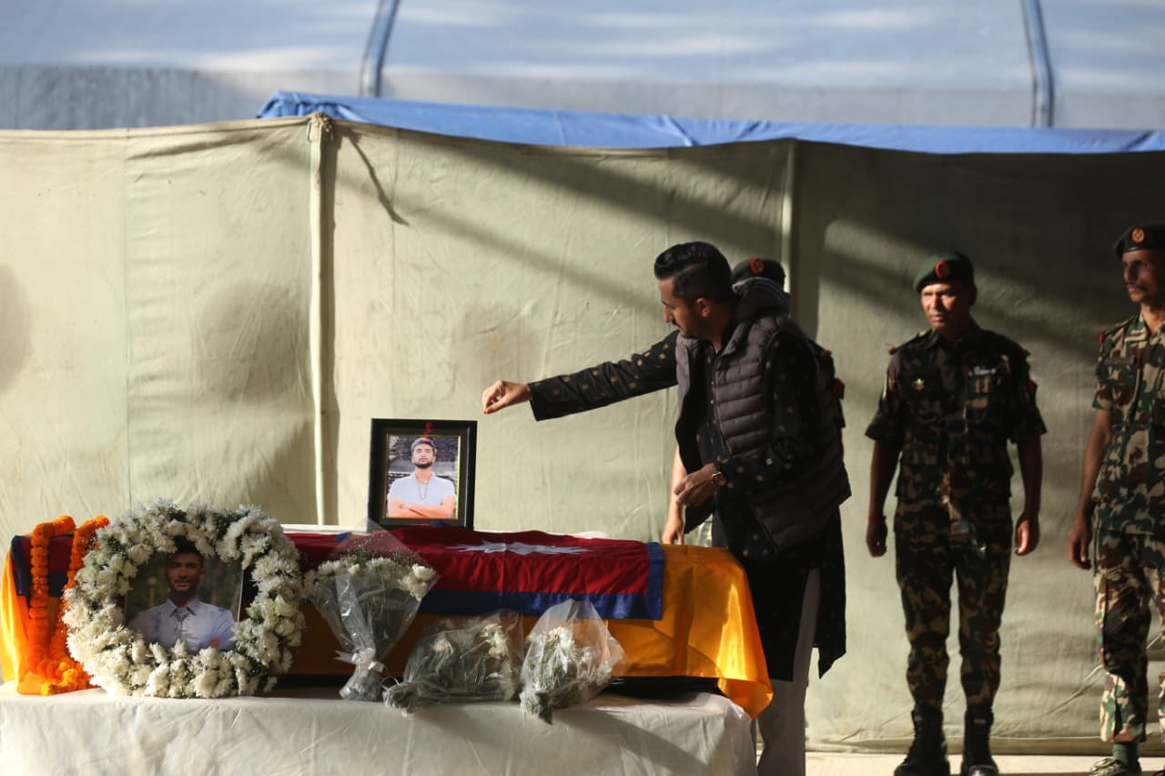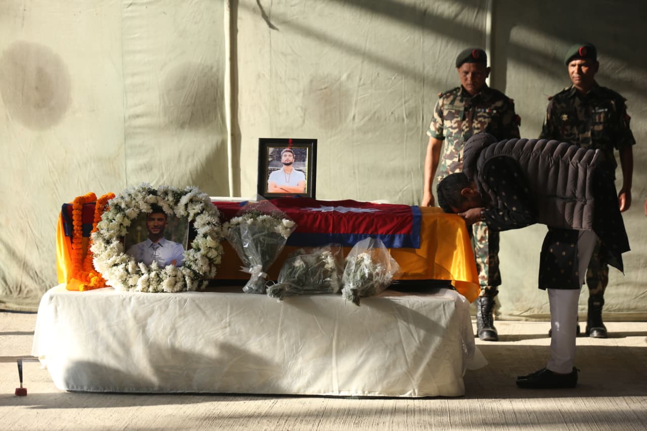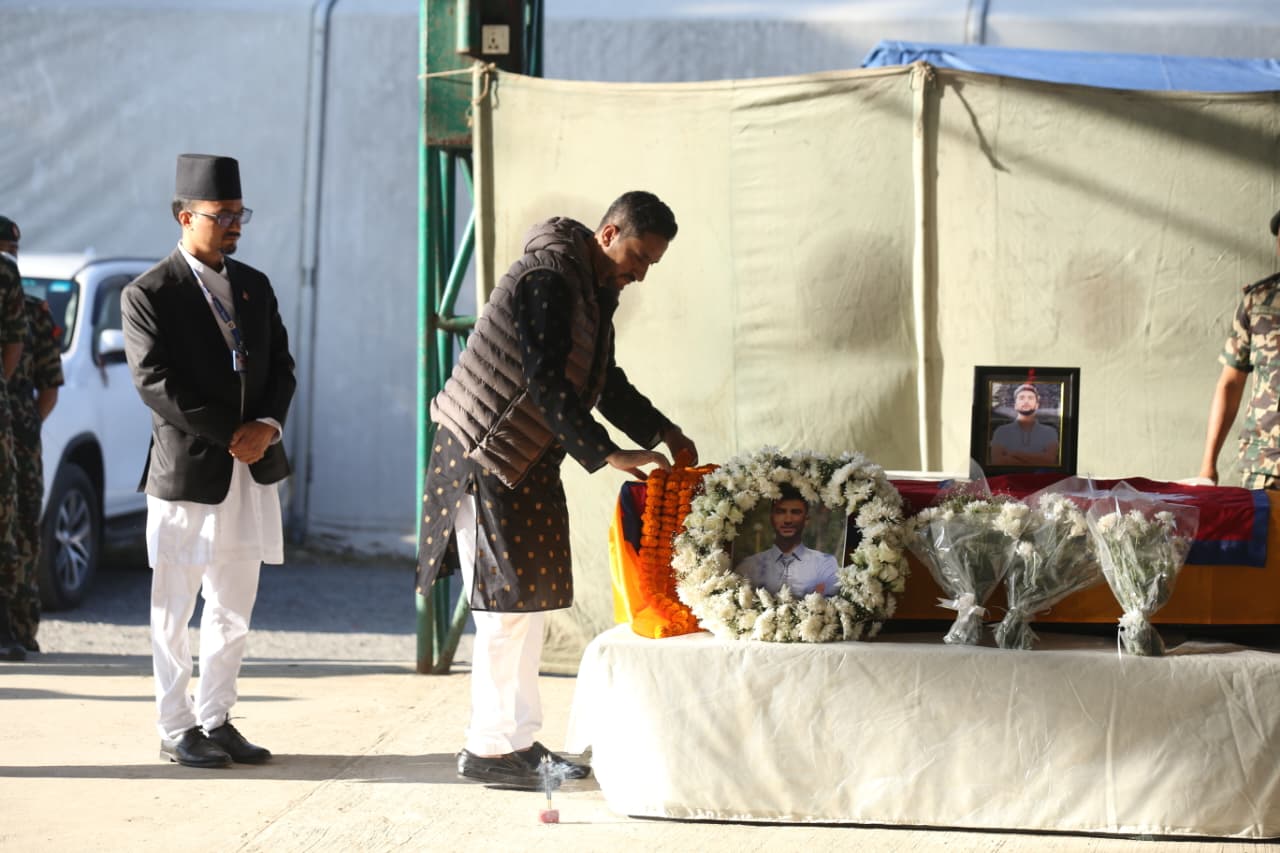 हमासको आक्रमणमा ज्यान गुमाएका नेपाली विद्यार्थी विपिन जोशीको पार्थिव शरीरमा प्रधानमन्त्रीसहित उच्च पदस्थहरूले भावपूर्ण श्रद्धाञ्जली अर्पण गरेका छन्।