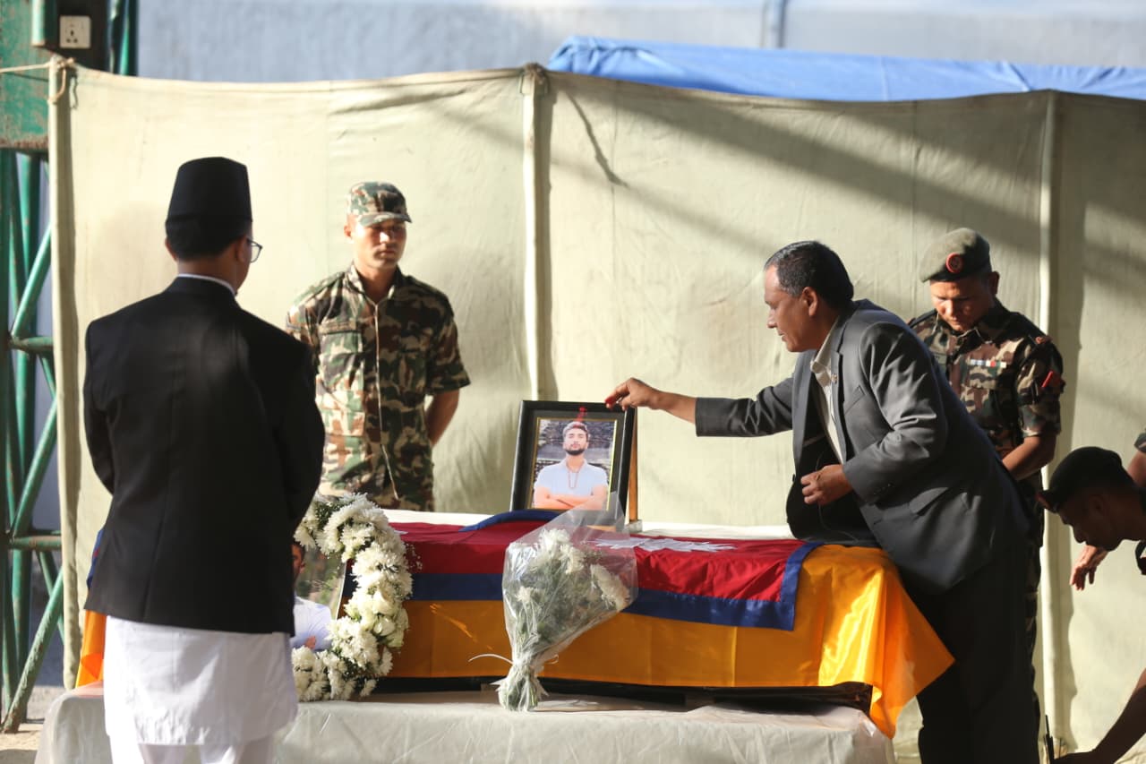 सोमबार बिहान त्रिभुवन अन्तर्राष्ट्रिय विमानस्थलमा उनको शव आइपुगेपछि आयोजित श्रद्धाञ्जली सभामा शोकाकुल वातावरणबीच उनीप्रति सम्मान व्यक्त गरिएको हो।