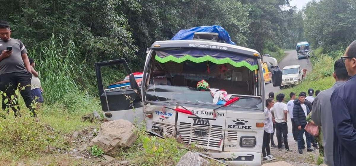 रामेछापबाट चरिकोट हुँदै काठमाडौंतर्फ जाँदै गरेको बा प्र ०३–००१ ख २५२१ नम्बरको बस अनियन्त्रित भई सडकको भित्तामा ठोक्किएर मङ्गलबार साँझ दुर्घटना भएको प्रहरीले जनाएको छ।