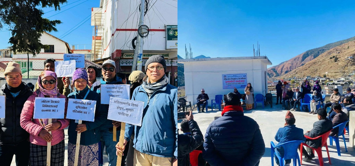 राष्ट्रिय मानव अधिकार आयोग कर्णाली प्रदेश शाखा जुम्लाकी प्रमुख कल्पना नेपाल (आचार्य) ले भनिन्, ‘हामी १६ दिन मात्र होइन, वर्षभर हिंसा विरुद्ध बोल्ने र सुरक्षित समाज निर्माण गर्ने लक्ष्यसहित अघि बढिरहेका छौँ।’