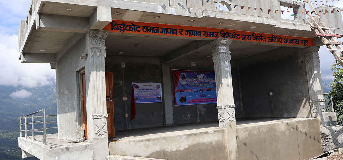 जापान समाज बिहुँकोट र बिहुँकोट समाज जापानको पहलमा ५१ जनाले प्रदान गरेको एक करोड रकमबाट २६ जनासम्म बस्न मिल्ने अतिथि आवासगृह निर्माण गरिएको बिहुँकोट समाज जापान तथा अतिथि आवासगृह निर्माणका संयोजक दीपक कँडेलले बताए।