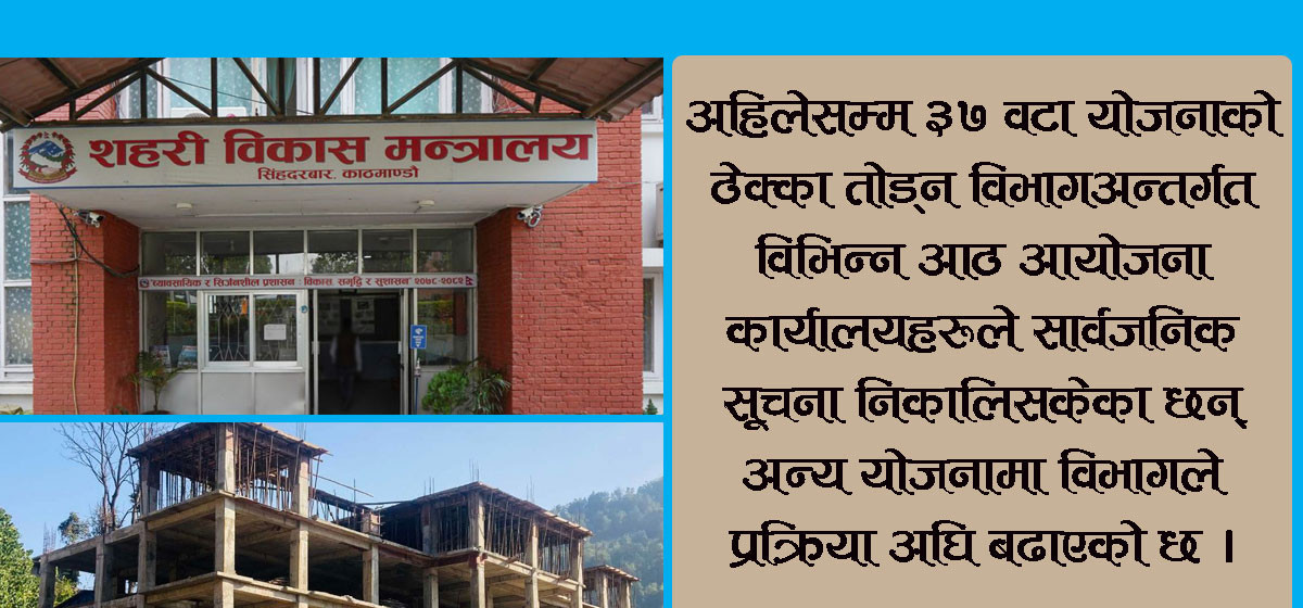 केन्द्रीय आयोजना कार्यान्वयन एकाइले सिंहदरबारस्थित रेडियो नेपालको भवनको ठेक्का सुविस्ताको आधारमा तोड्न लागेको हो । यसैगरी केन्द्रीय आयोजना कार्यान्वयन एकाइले ठेक्का लगाएको हिरण्य वर्ण महाविहार ललितपुरको भवन, विशेष भवन आयोजनाले ठेक्का लगाएको मन्त्री क्वाटर कम्पाउन्डको ठेक्का पनि तोड्न प्रक्रिया अघि बढाइएको छ ।