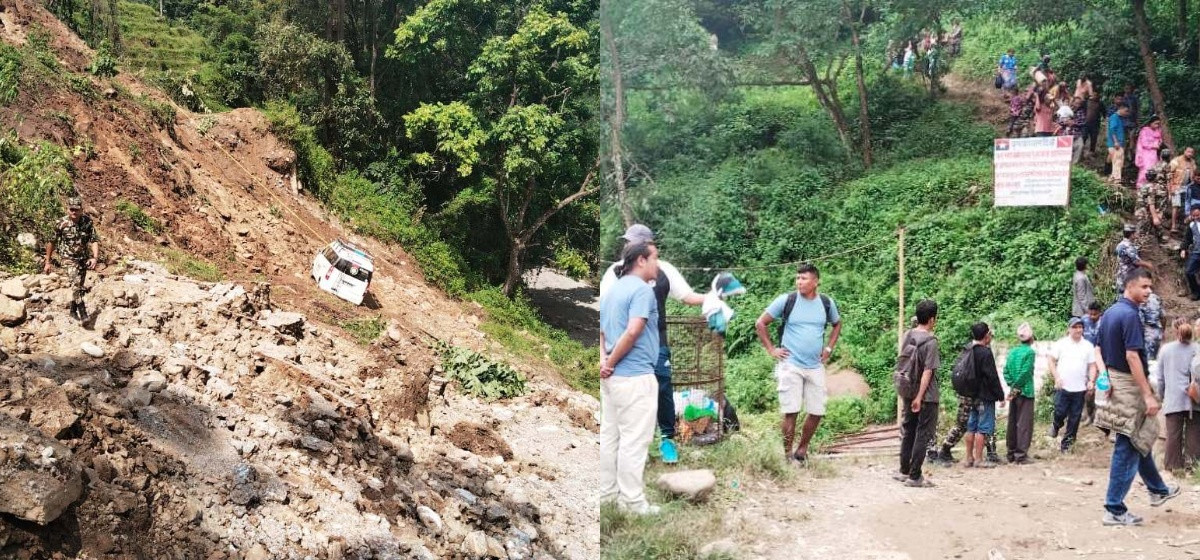 मिलगोलाइमा राजमार्ग नै बगेर गएकाले माथिपट्टिबाट बाटो निकाल्न घर रहेकाले समस्या छ। ‘सडक निकाल्ने ठाउँमा घर छ, घरमा मान्छे त बस्दैनन् तर यो घर के गर्ने भन्ने अन्योल छ,’ उनले भने, ‘यो घर नहटाइ तत्काललाई ठूला गाडी पास गराउने बाटो नै निस्किँदैन।’ बुधबार साँझसम्म काम गरे पनि मिलगोलाइतिरबाट काम गरेको जेसिबी बिग्रिएको छ। त्यताबाट बिहीबार ठूलो मेसिनले काम गर्ने उनले बताए।