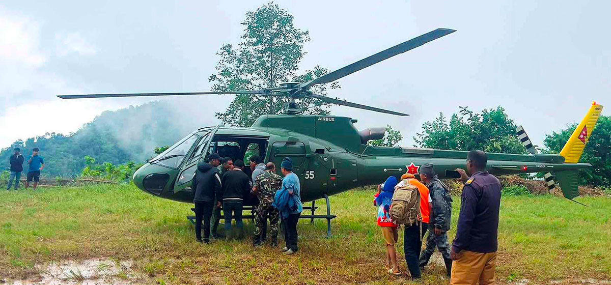 नेपाली सेनाको हेलिकप्टरले माङ्सेबुुङ गाउँपालिका १ को गजुरमुखीबाट गर्भवती साधना लिम्बू, मदन लिम्बू उनीहरूका छोरा संयोग लिम्बूको उद्धार गरेको छ। उनीहरू पहिरोमा फसेका थिए भने गम्भीर घाइते छन्।