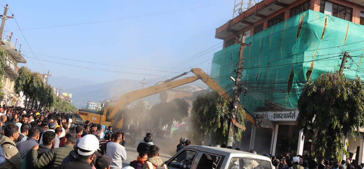 तोकिएको समय सीमाभित्र धनीले त्यस्तो भौतिक संरचना नहटाएकाले कार्यालयले डोजर प्रयोग गरेर संरचनाहरू हटाउन थालिएको प्रमुख अधिकारीले बताए। सडक खाली गराउने क्रममा स्थानीयबाट अवरोध हुन सक्ने सम्भावना रहेकाले सुरक्षाकर्मीहरूको बाक्लो उपस्थिति छ। रासस