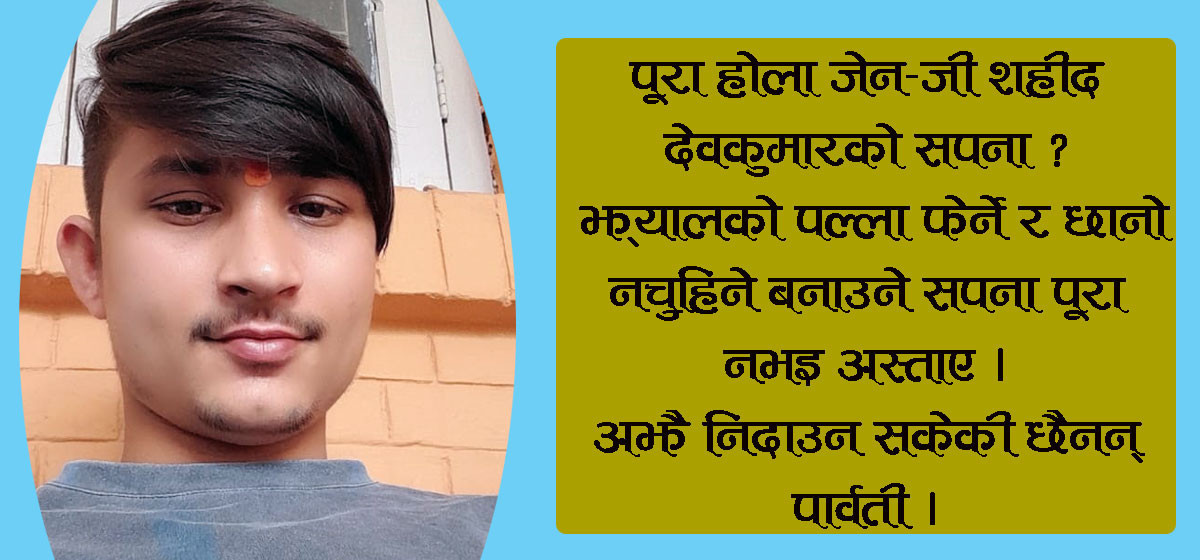 २६ वर्षीया पार्वती सुवेदीको अझै मन सम्हालिएको छैन । उनलाई गत भदौ २४ गतेको त्यो दिनले अहिले पनि एक्लै बस्न दिँदैन । त्यो दिन सम्झँदा अहिले पनि उनी भक्कानिन्छिन् । २७ वर्षका श्रीमान् देवकुमार सुवेदीको जेन-जी आन्दोलनको क्रममा गोली लागेर मृत्यु भएपछि उहाँका हरेक दिनहरू पीडामा बितेका छन् ।