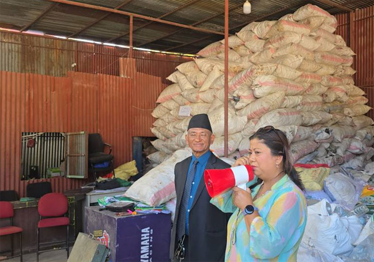 खेर गएका कापी काटुर्ननहरुलाई पनि यसरी नै एकैठाउँमा राखेर मेशिनमा राखिन्छ र यसले कागजलाई टुक्राटुक्रा गरी धुलो बनाइन्छ र नयाँ कापी बनाउने कारखानामा निर्यात गर्ने गरिएको उनले बताइन ।
