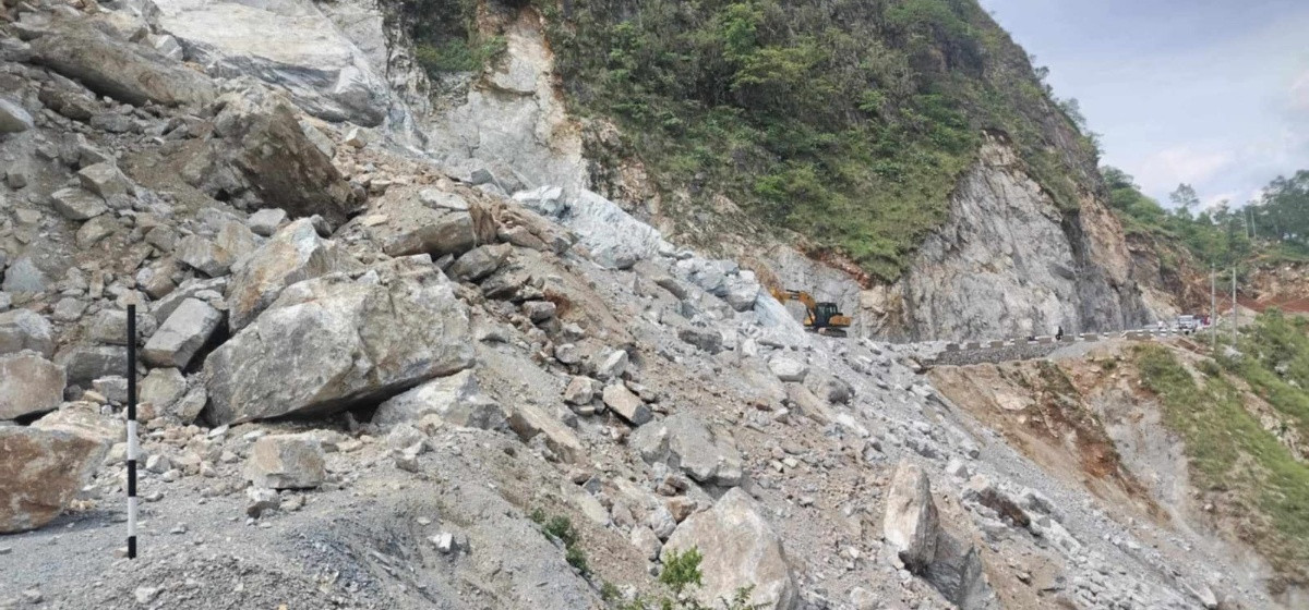 अरनिको राजमार्ग (सिन्धुपाल्चोक): भोटेकोशीको कोदारीमा पहिरोले अवरुद्ध।