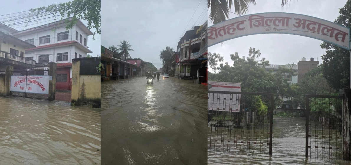 गएरातीदेखि परेको अविरल वर्षाका कारण रौतहटको सदरमुकाम गौरका अधिकांश सरकारी कार्यालय परिसरमा पानी भरिएको छ।