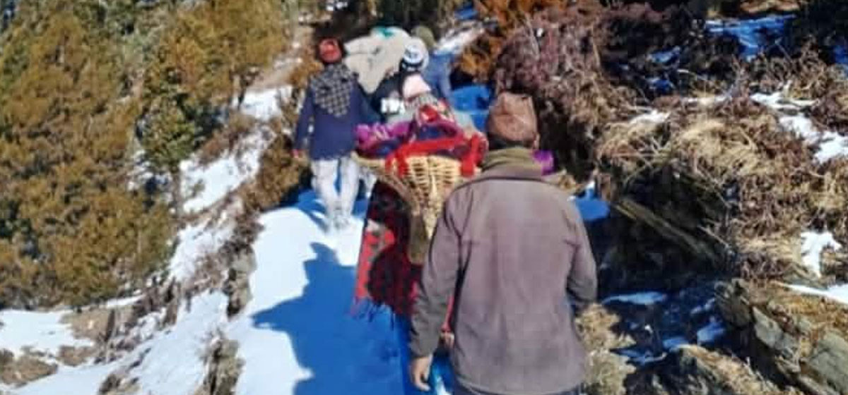 जुम्लाको तिला गाउँपालिका–९ माथिल्लो खोप्रीकी २७ वर्षीया रमिता थापालाई दुई साताअघि सुत्केरी व्यथा लाग्यो। आफन्तले स्ट्रेचरमा बोकेर बर्थिङ सेन्टर रहेको राँसा स्वास्थ्यचौकीतर्फ लगे। बाटोमा झन्डै दुई फिट हिउँ जमेको चायापाटन क्षेत्रमा पुग्दा नै सुत्केरी भइन्। शिशुको नाभी ढुंगाले काटियो। यो घटना अपवाद होइन, कर्णालीको यथार्थ हो।