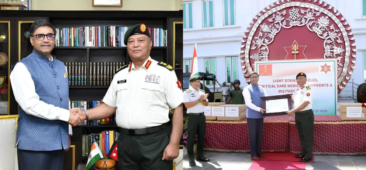 दुईदिने नेपाल भ्रमाणमा आएका भारतीय विदेशसचिव विक्रम मिश्रीले नेपाली सेनालाई ६ वटा स्ट्राइकिङ भेइकल उपहारस्वरुप हस्तान्तरण गरेका हुन्। विदेश सचिव मिश्री नेपाली सेनाको मुख्यालय जंगीअड्डा पुगेर ‘लाइट स्ट्राइकिङ भेइकल’ हस्तान्तरण गरेका हुन्। साथै ६ वटा सैनिक घोडा  र २ वटा सैनिक कुकुरसमेत उनले हस्तान्तरण गरेका छन्।