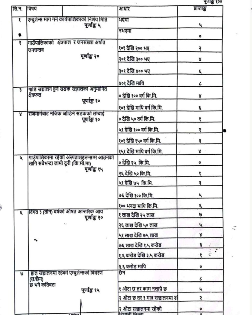 पारदर्शिता सुनिश्चित गर्नका लागि एम्बुलेन्स वितरण गरिने पालिका छनोटको मापदण्ड समेत उनले सार्वजनिक गरेका छन्।