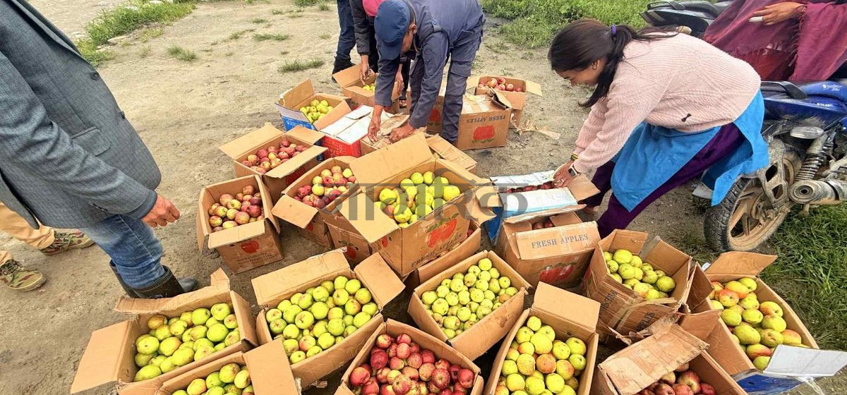 गोल्डेन र रेड जातको स्याउ बरामद गरिएको थियो।यता जिल्ला समन्वय समिति जुम्लाका प्रमुख गौरीनन्द आचार्यका अनुसार जिल्ला समन्वय समिति जुम्लाको आठौं जिल्ला सभाले नै भदौ १५ गते अगाडिसम्म स्याउ टिप्न नपाइने निर्णय गरेको छ । बरामद गरेको स्याउ कानुनी प्रक्रिया पुर्याएर राखिने प्रतिक्रिया छ।