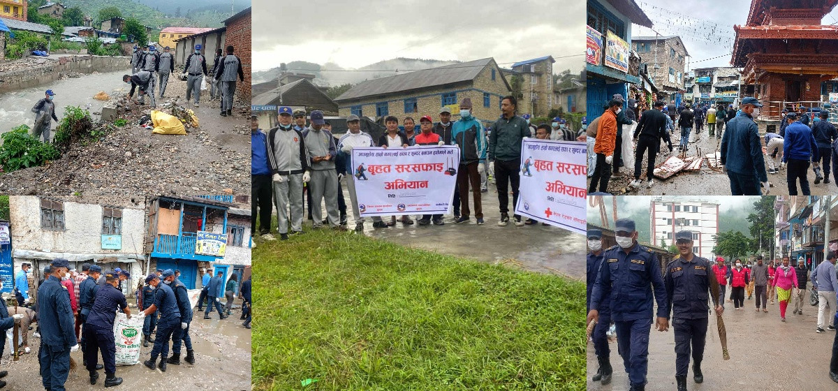 शुक्रबार जुम्लाको खलंगा बजार सरसफाइ गरिएको छ। बृहत् सरसफाइ अभियान सुरु गरेर सरसफाइ गरिएको हो। ‘आउनुस् हाम्रो नगरलाई सफा र सुन्दर बनाउन हातेमालो गरौं’ भन्ने नारा लिइएको छ। जुम्लाका समन्वय प्रमुख गौरीनन्द आचार्यको नेतृत्वमा यो अभियान थालिएको हो।