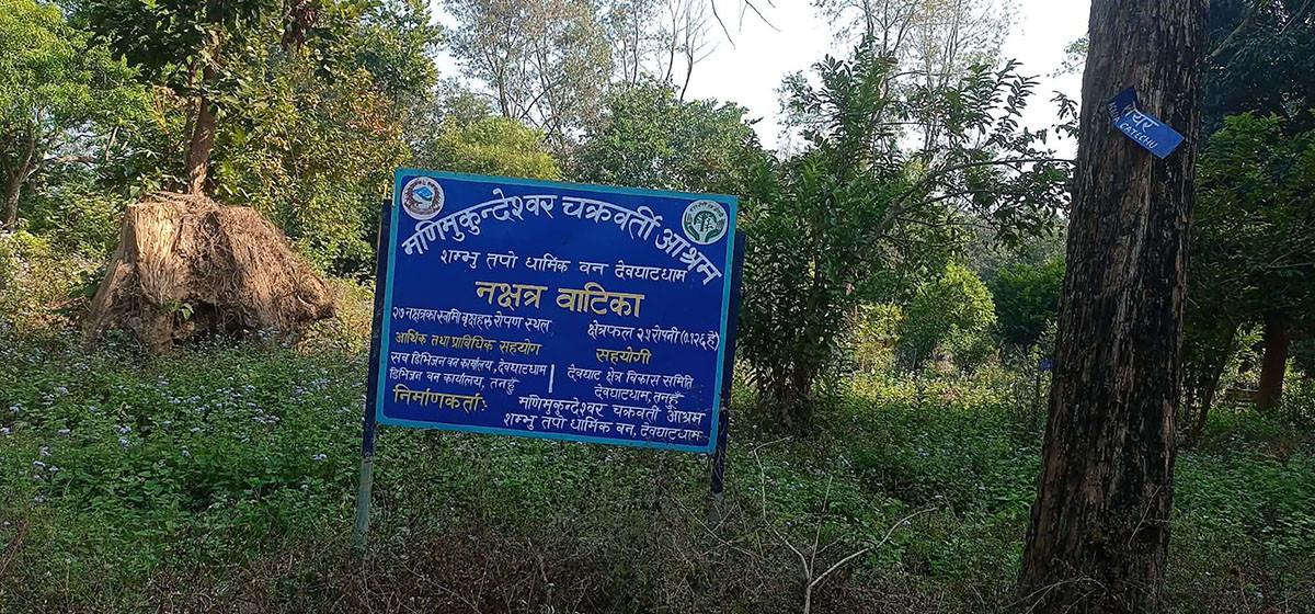 देवघाट क्षेत्र विकास समितिको स्वामित्वमा रहेको मणिमुकुन्देश्वर चक्रवर्ती आश्रम धार्मिक वनभित्र निर्माण गरिएको नक्षेत्र वाटिका हाल संरक्षण अभावका कारण अत्यन्तै नाजुक अवस्थामा पुगेको छ। धार्मिक, सांस्कृतिक तथा वातावरणीय दृष्टिले महत्त्वपूर्ण मानिने यो वाटिका उचित व्यवस्थापन नहुँदा दिनानुदिन उजाड बन्दै गएको हो।