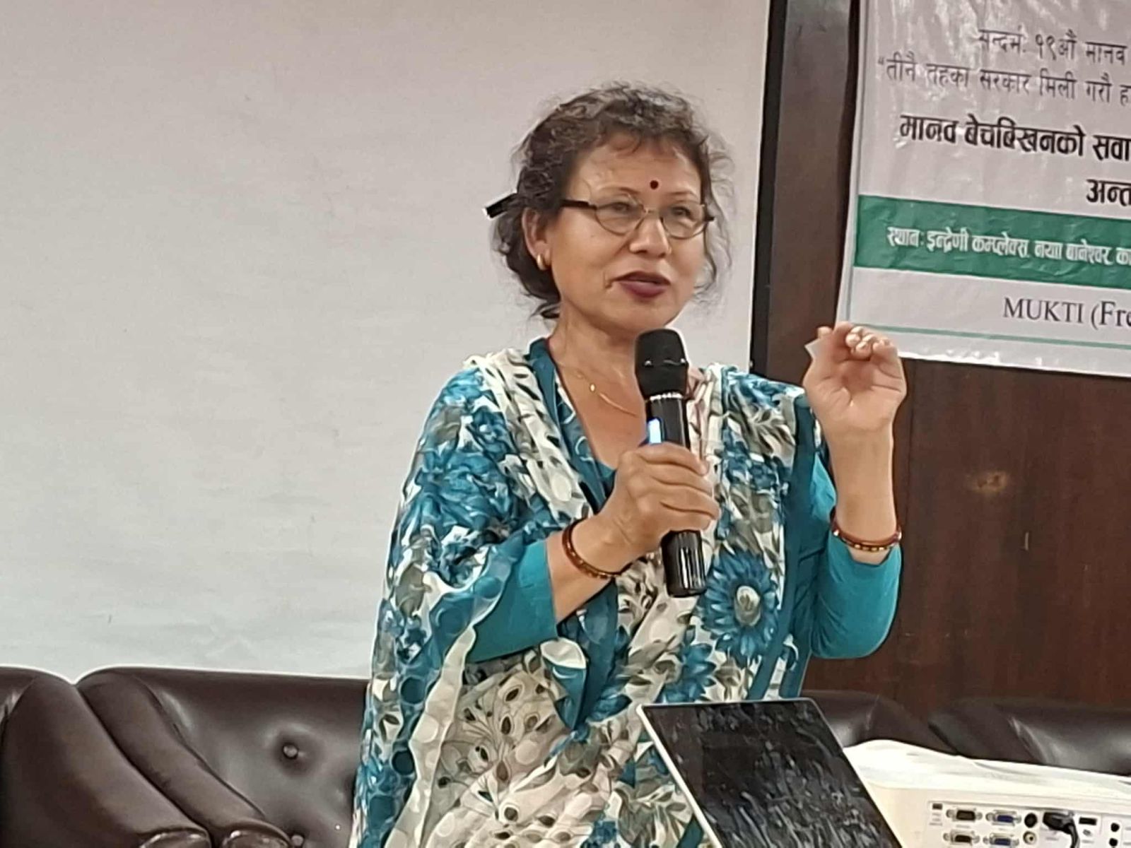 उनले कानुन बने पनि त्यसको कार्यान्वयनमा लैजान नसकेका कारण समाजमा बेचबिखनको सम्या झनै जटिल बन्दै गएको बताइन्। उनी भन्छिन्, ‘कानुनले जे भन्छ, त्यो व्यवहारमा देखिँदैन। उद्धार गरेर छाडिदिने प्रवृत्ति बढेको छ। व्यवस्थापनबिना उद्धार अधुरो हुन्छ।’