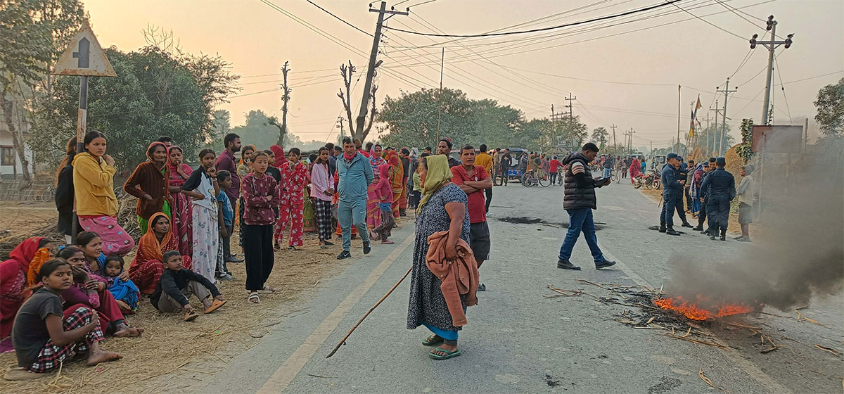 स्थानीयले क्षतिपूर्तिको माग राखेर बिहीबार दिउँसो २ बजेदेखि हुलाकी राजमार्ग अन्तर्गत सुनसरी बर्जुमा यातायात आवागमन अवरुद्द गरे । सडकमा ढाट लगाएर र टायर बालेर स्थानीयले यातायात सञ्चालनमा अवरोध सिर्जना गरेका हुन् ।