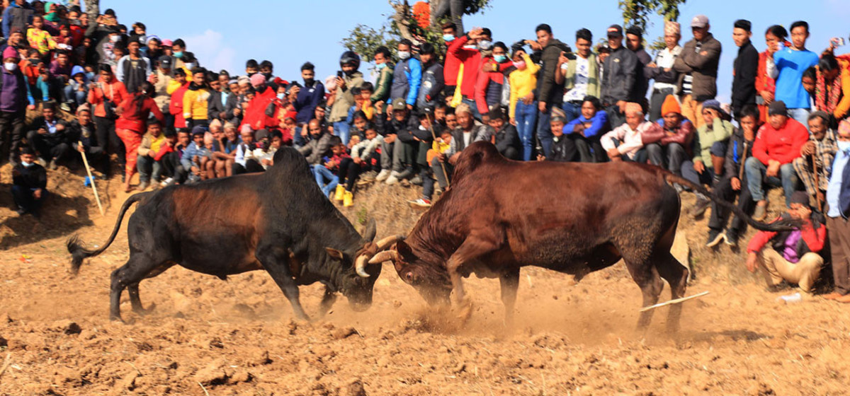 माघे सङ्क्रान्तीको दिन आज धादिङमा एक सय हल गोरु जुधाइएको छ । कृषि कर्मका लागि पालिएका गोरुलाई माघे सङ्क्रान्तिको दिन जुधाउने सांस्कृतिक परम्पराअनुसार जुधाइएको हो ।