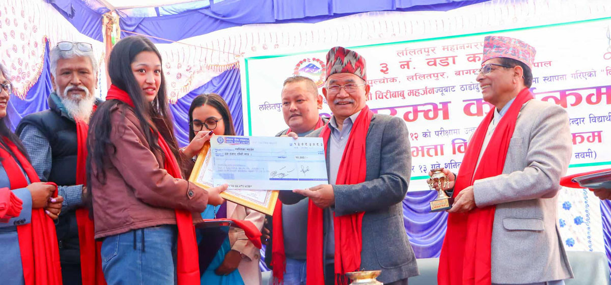 विद्यार्थीहरूलाई महानगर प्रमुख महर्जन, वडा अध्यक्ष महर्जन र बोर्ड अध्यक्ष शर्माले प्रमाणपत्र, खादा र प्रोत्साहन भत्ता प्रदान गरेका थिए।