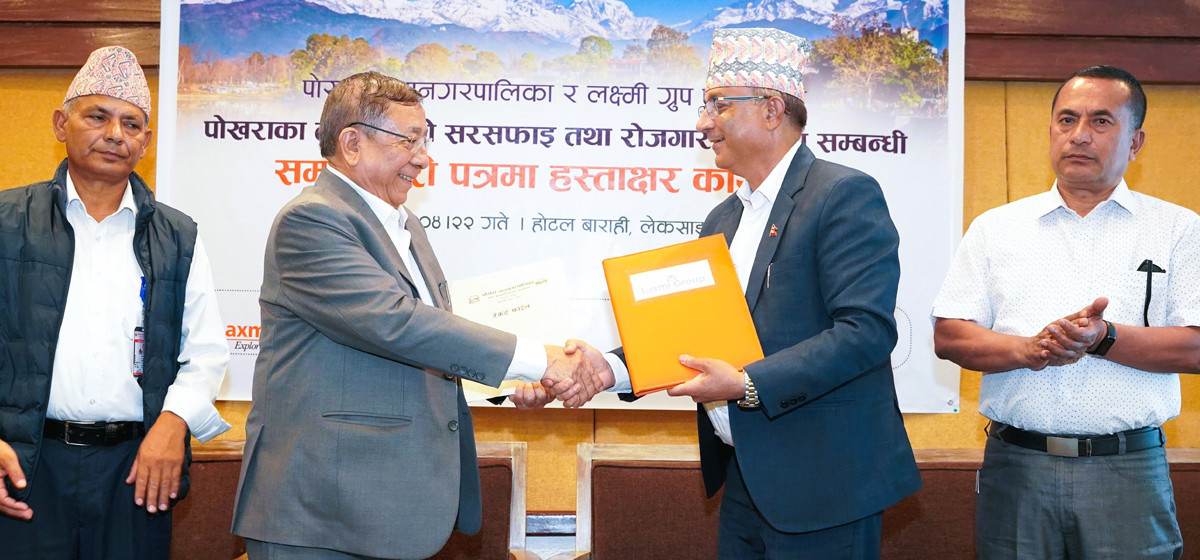 लक्ष्मी ग्रुप तथा लक्ष्मी फाउण्डेसनका अध्यक्ष गणेशबहादुर श्रेष्ठले संस्थागत सामाजिक उत्तरदायित्व अन्तर्गत आफूहरूले परियोजना सञ्चालन गर्न लागेको बताए । ‘पोखराको पर्यावरण संरक्षण र सामुदायिक सशक्तीकरणमा सहयोग तथा सहकार्य गर्ने प्रतिबद्धतालाई व्यवहारिक कार्यान्वयनका लागि सम्झौता गरेका छौँ’–उनले भने ।