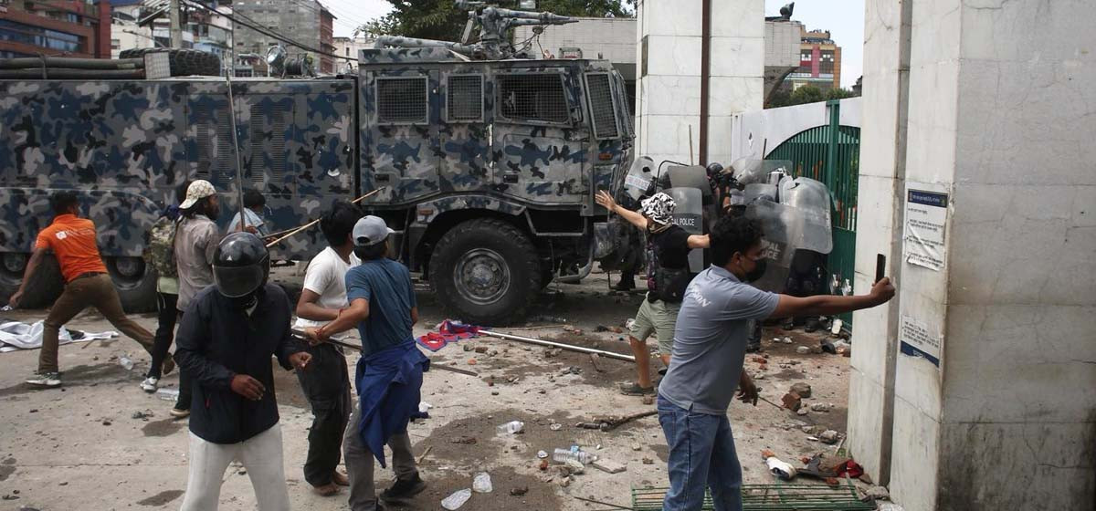 ‘जेन-जी’ पुस्ताको प्रदर्शनमा १४ जनाको मृत्यु भएपछि उग्र बनेको काठमाडौंको नयाँ बानेश्वर क्षेत्रमा प्रहरीले प्रदर्शनकारीहरूमाथि व्यापक बल प्रयोग गर्दै उनीहरूलाई लखेट्न थालेको छ।