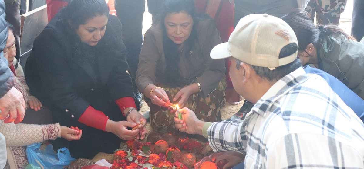 तलेजु र साततले दरबारको भूकम्पले क्षतिग्रस्त बनेका संरचना हटाई नयाँ निर्माण प्रारम्भ गर्नुअघि जग सतहको आज पुरातत्व विभागका महानिर्देशक सौभाग्य प्रधानाङ्गसहित सरोकारवालाबाट ‘भूमिको क्षमा पूजा’ गरेर पुनःनिर्माण कार्य प्रारम्भ गरिएको हो।