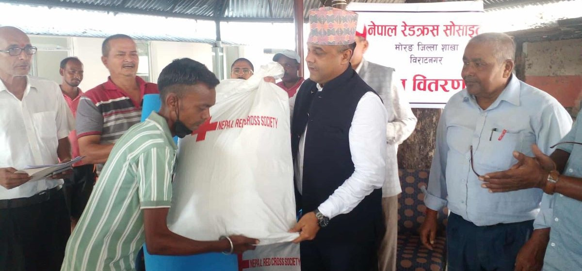 बाढीले पूर्णरुपमा क्षति पुर्याएका घरधनीलाई राहत बितरण गरिएको नेपाल रेडक्रस सोसाईटी मोरङले जनाएको छ। राहत सामाग्री मोरङका प्रमुख जिल्ला अधिकारी इन्द्रदेव यादव, रेडक्रस सोसाईटी मोरङका सभापति सुकदेव मण्डललगायतले पीडित परिवारलाई हस्तान्तरण गरेका थिए।
