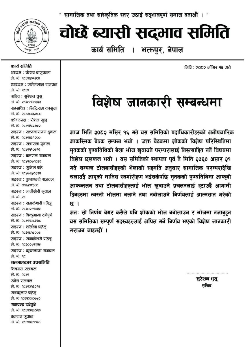 भक्तपुर नगरपालिका-६ चोछें भक्तपुरले यस्तो अपिल गरेको हो ।