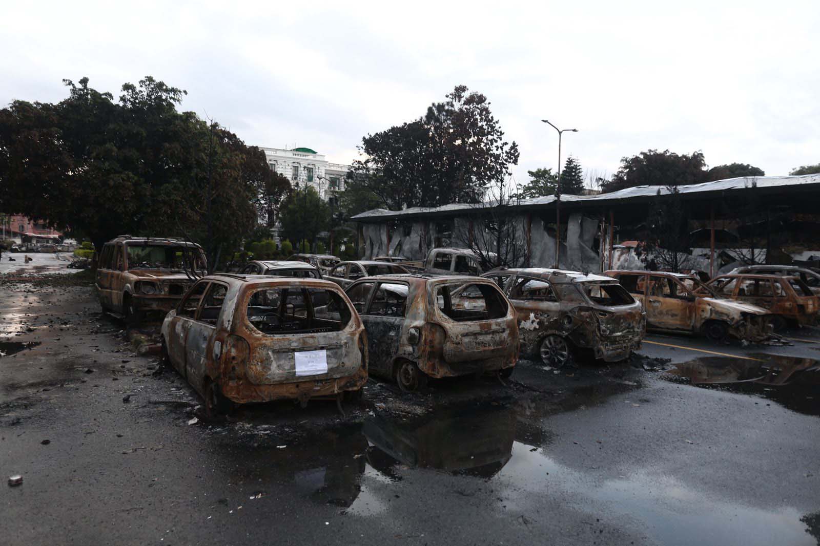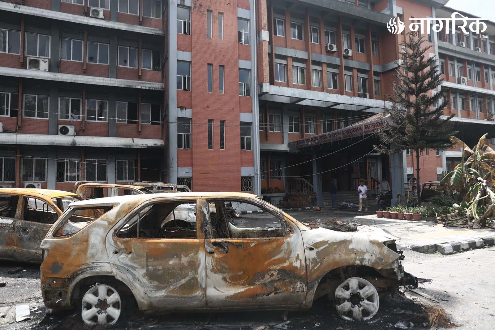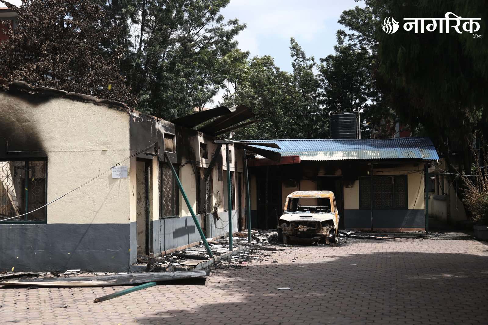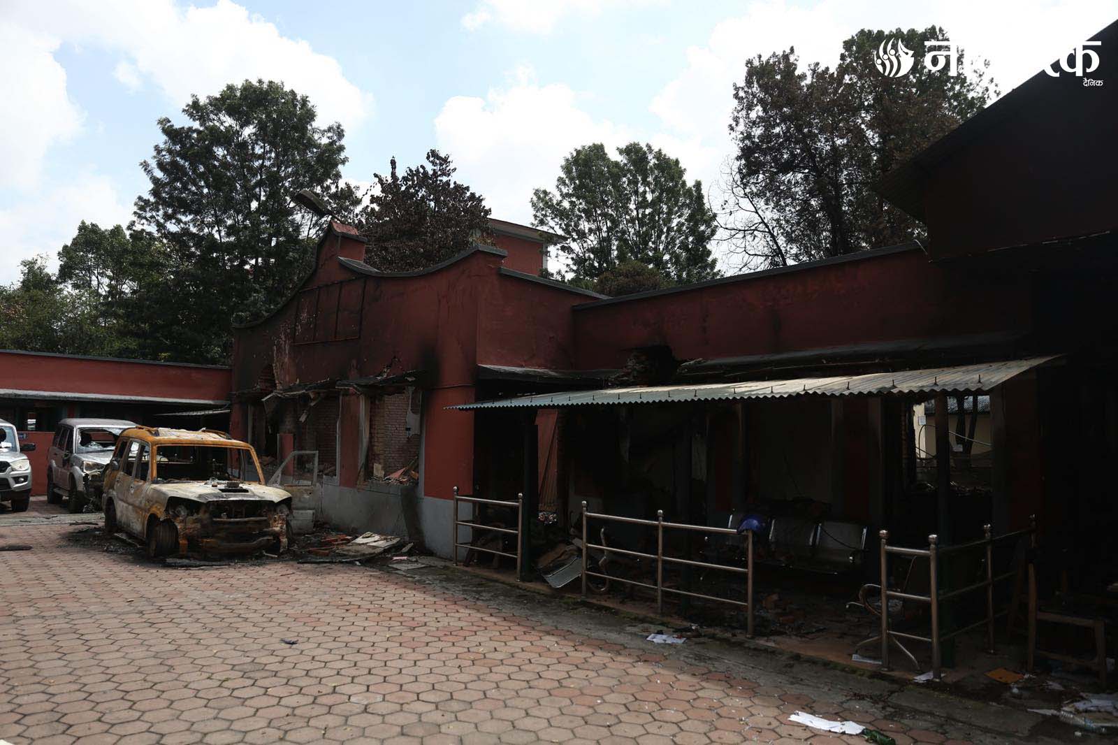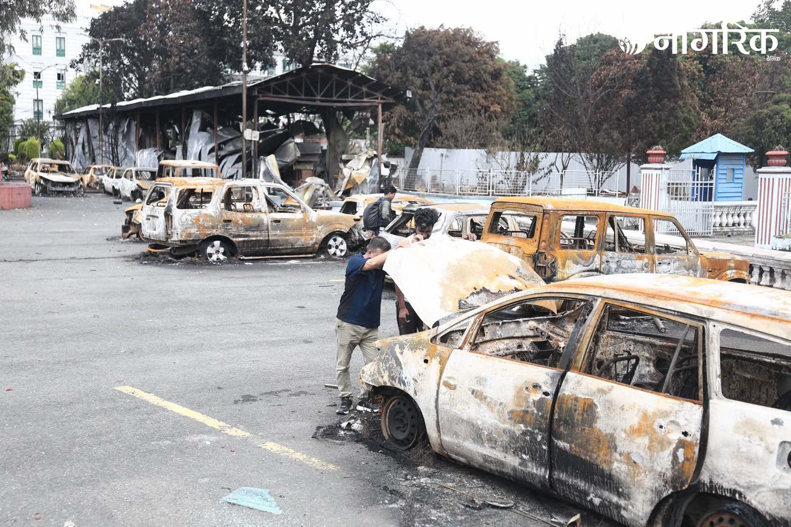 मन्त्रालय परिसरमा रहेका दर्जनौं सवारीसाधनहरू जलेर ध्वस्त भएका छन्।