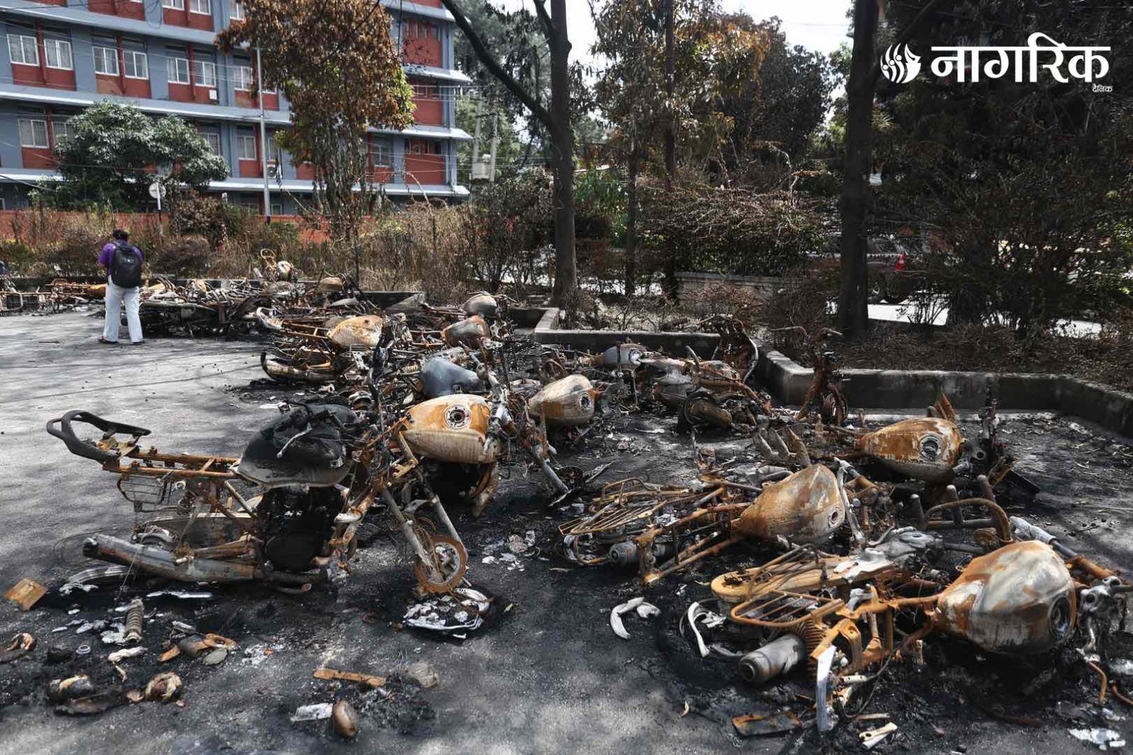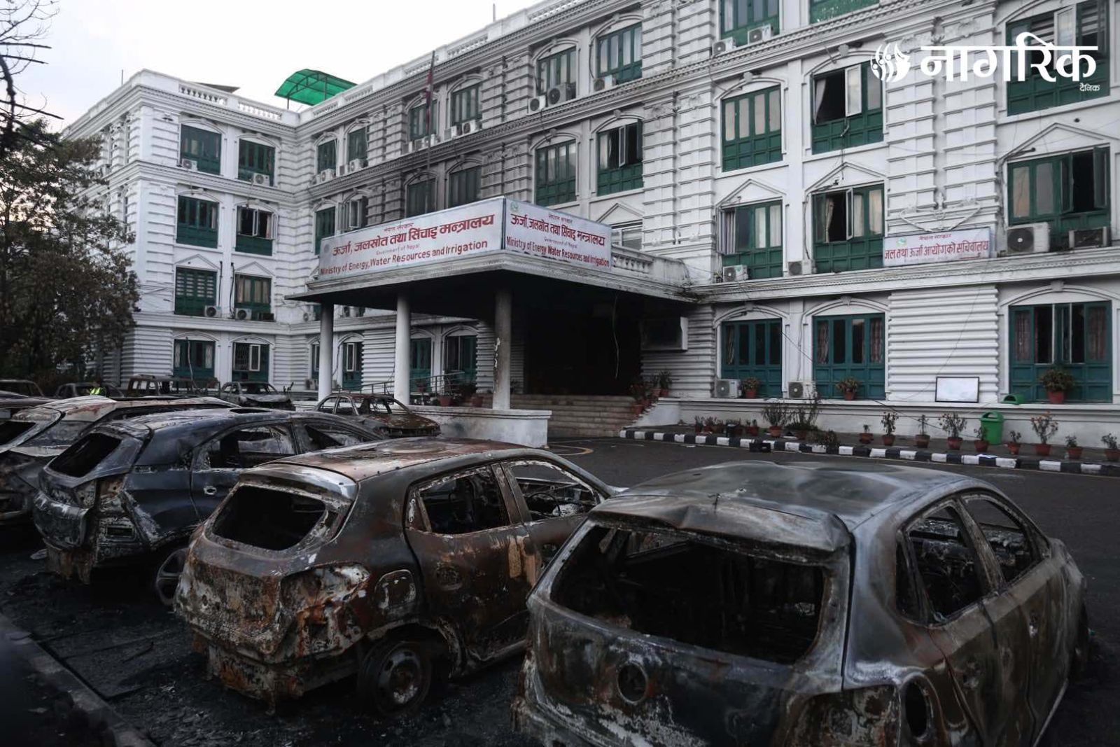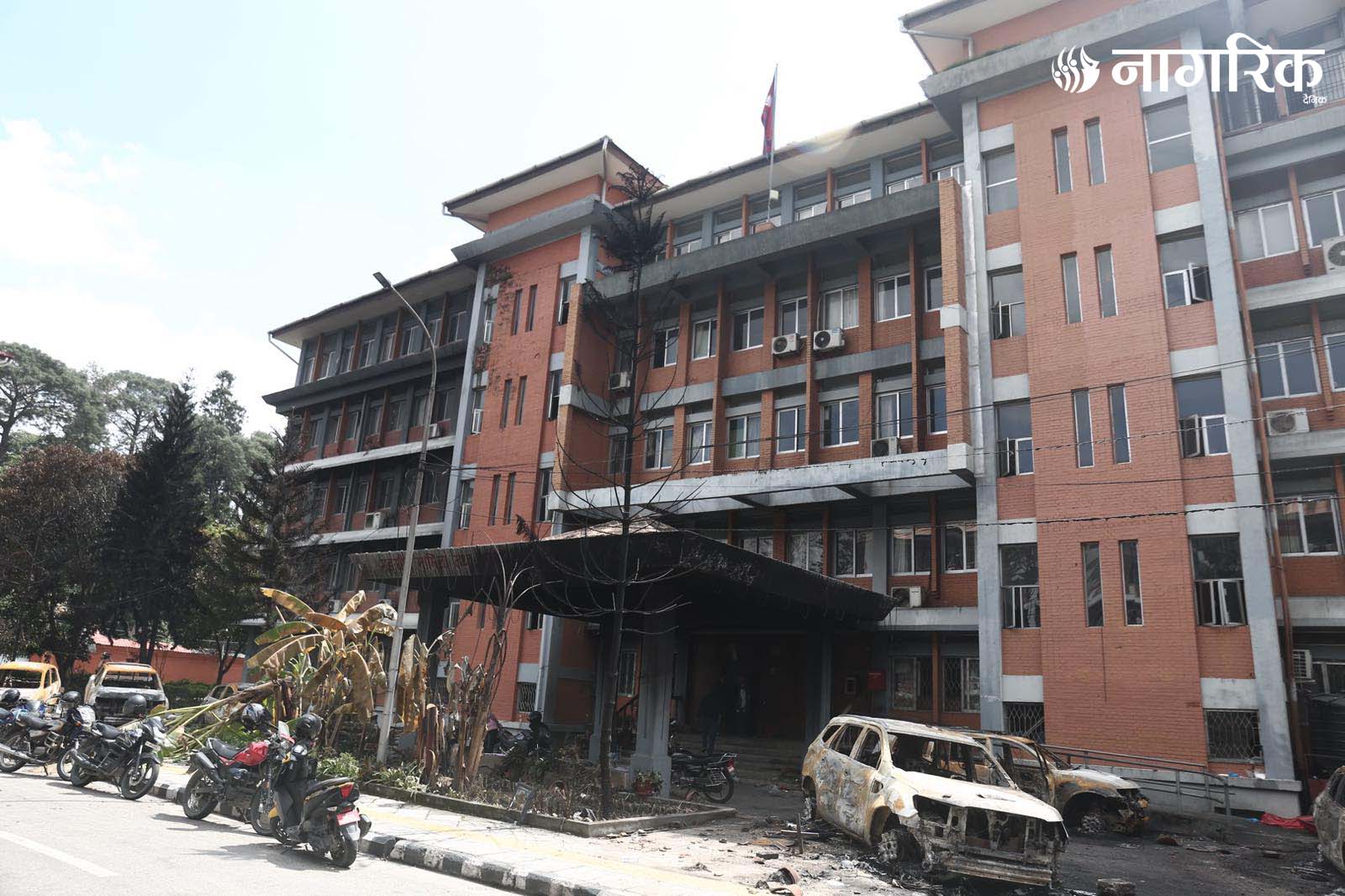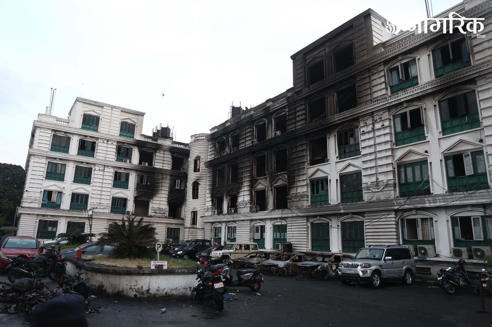 मन्त्रालय परिसरमा रहेका दर्जनौं सवारीसाधनहरू जलेर ध्वस्त भएका छन्।