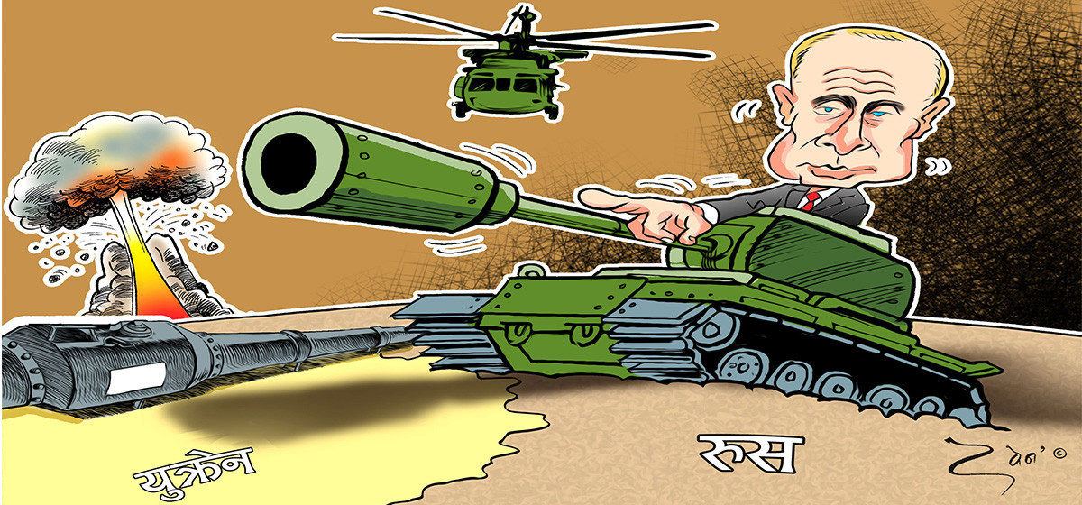तर विगतको त्यो महाशक्तिराष्ट्रको उत्तराधिकार पाएको रुसको वैभव वर्तमानमा छिमेकी युक्रेनको एक दक्षिणपूर्वी इलाका दोनबासमा खुम्चिएको छ। ऊ स्कुल, अस्पताल, आवासीय भवन, खानेपानी र विद्युत् आपूर्तिका संरचनाहरूमा गोला बारुद बर्साएर शक्ति प्रदर्शन गर्छ। देशका राष्ट्रपतिलाई राष्ट्रसंघको अन्तर्राष्ट्रिय फौजदारी अदालतले युद्धअपराधको अभियोग लगाएको छ।