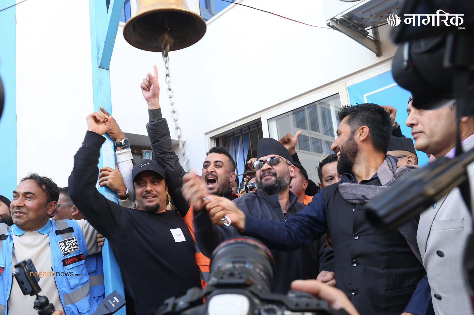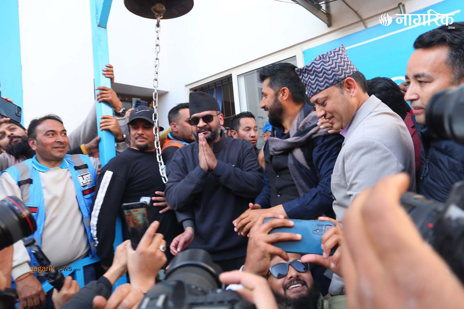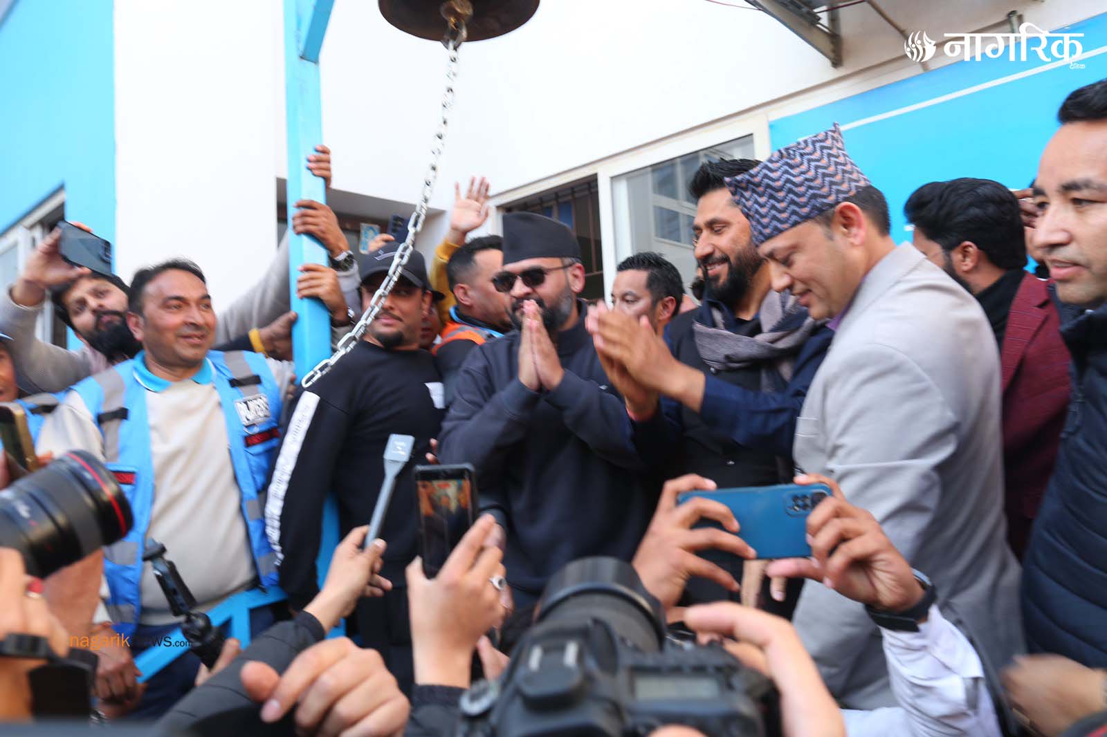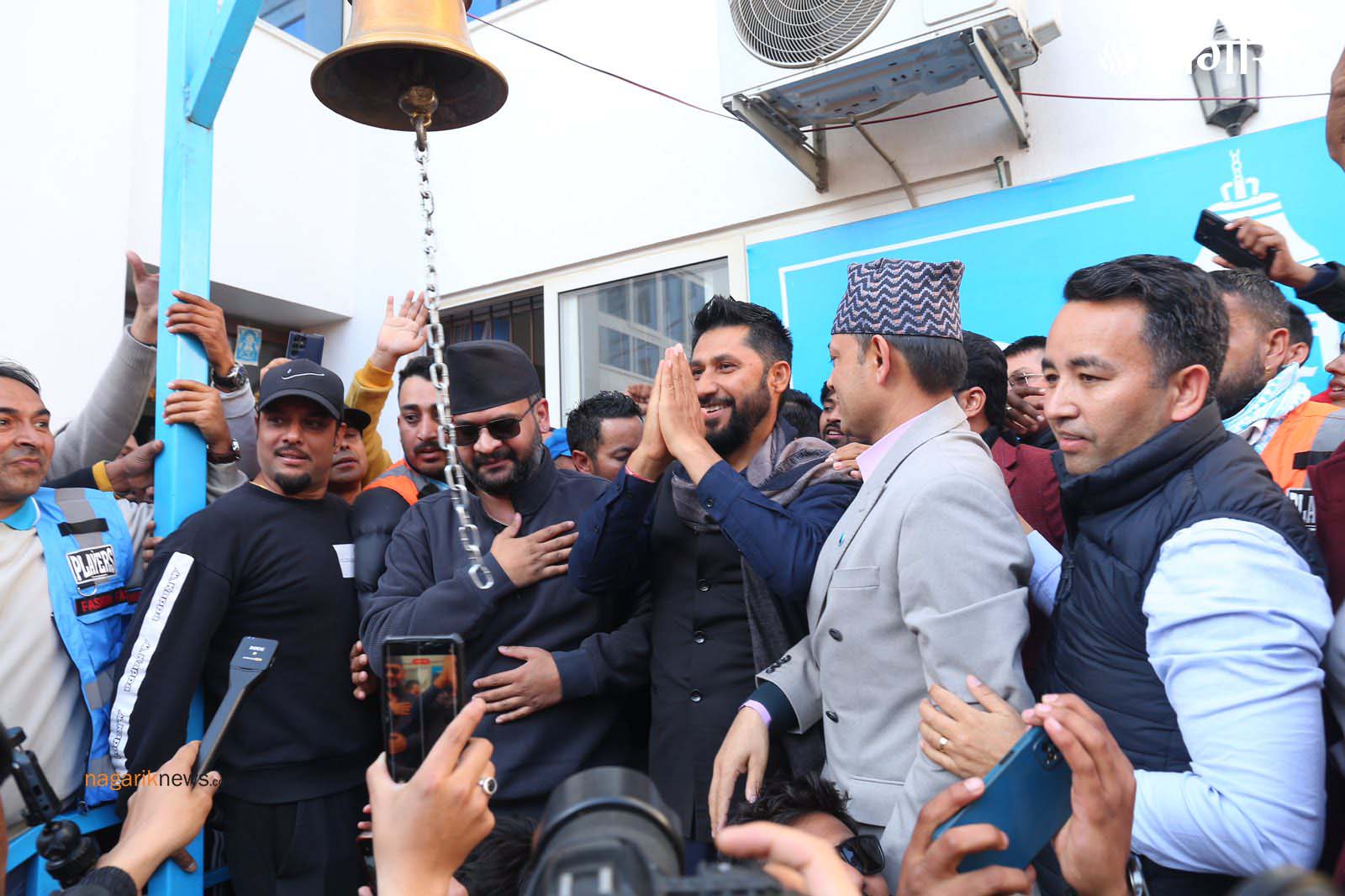 सभापति लामिछाने र बालेनले एकसाथ घण्टी बजाएर कार्यालय प्रवेश गरेका थिए।