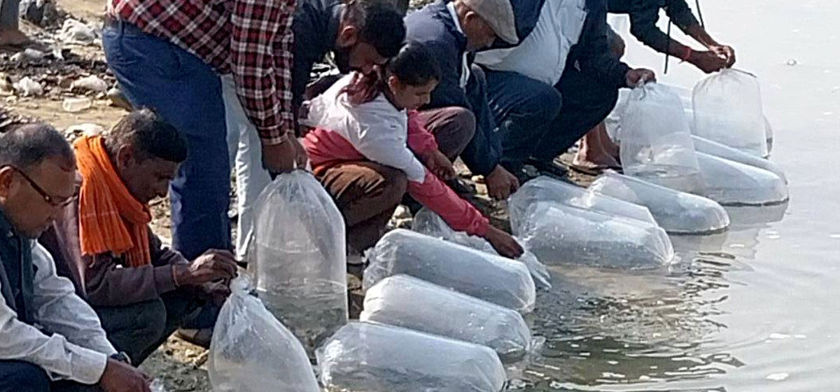 विश्व मत्स्य दिवसको अवसरमा रामघाटमा साढे सात हजार माछाका भुरा छाडिएको छ ।