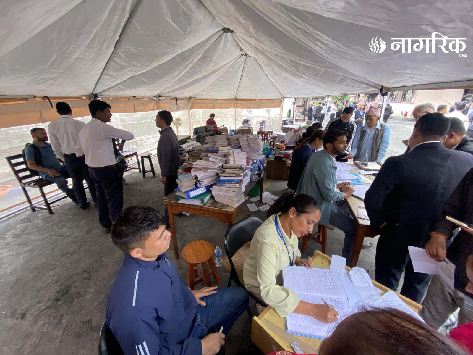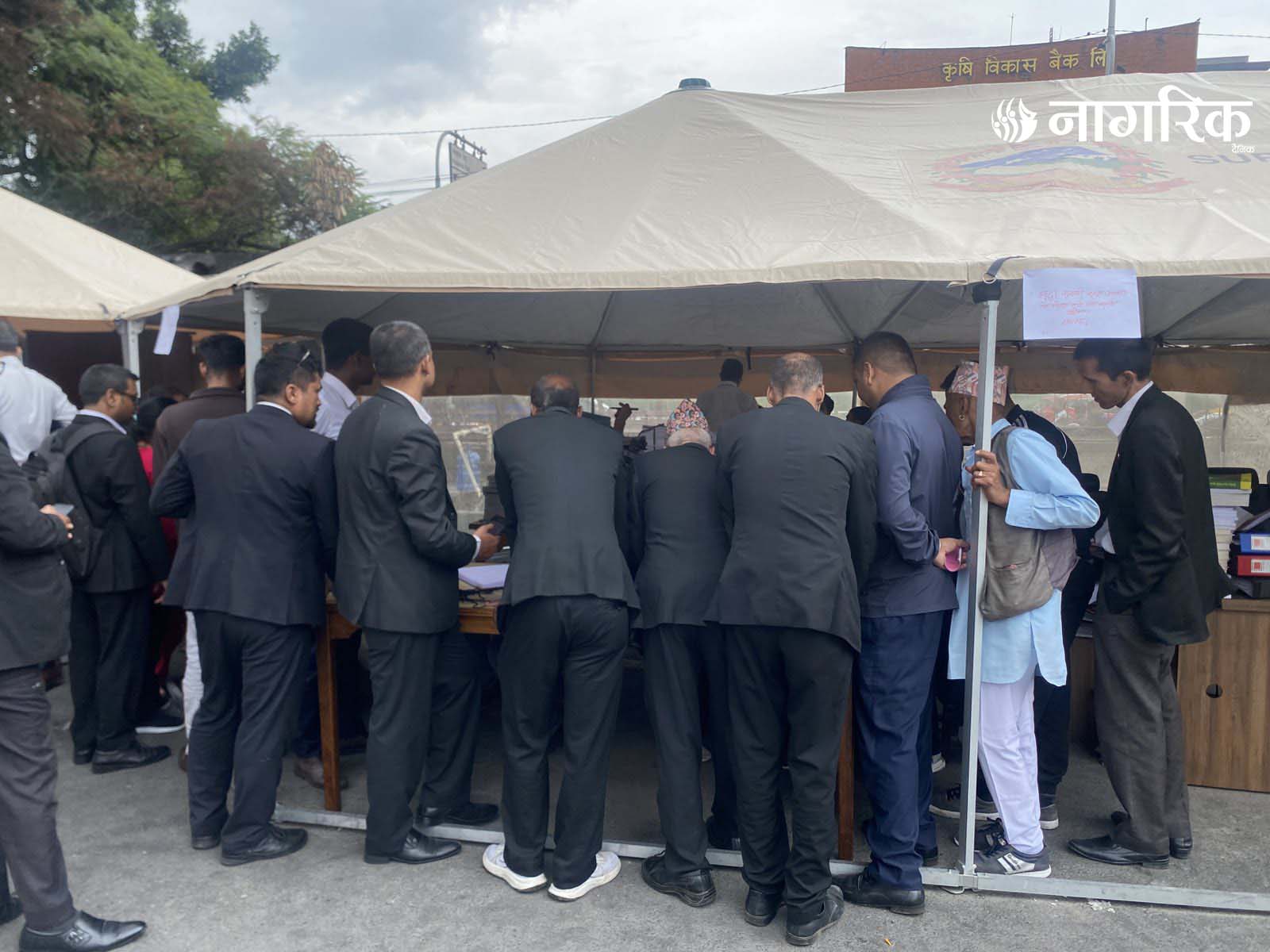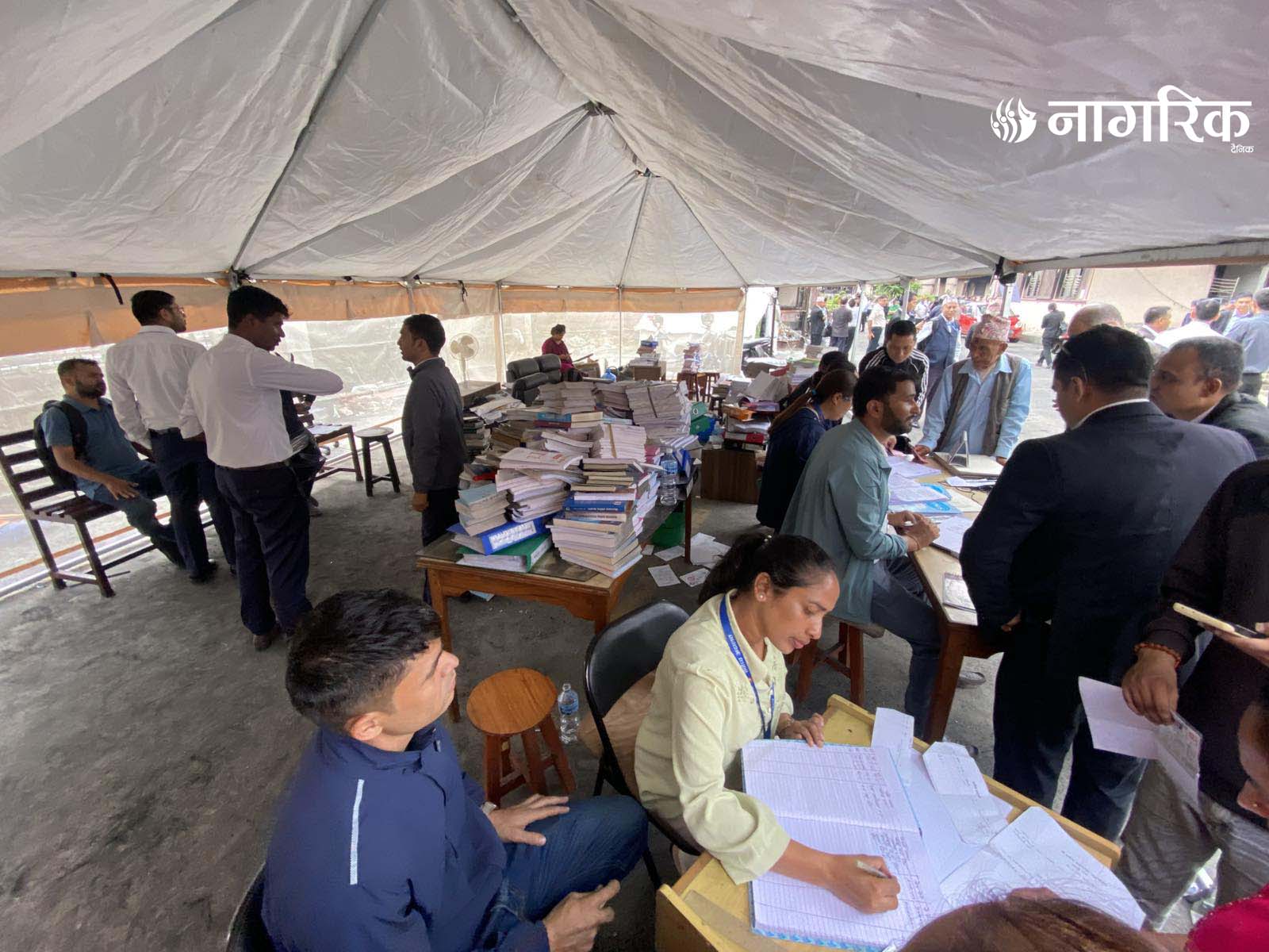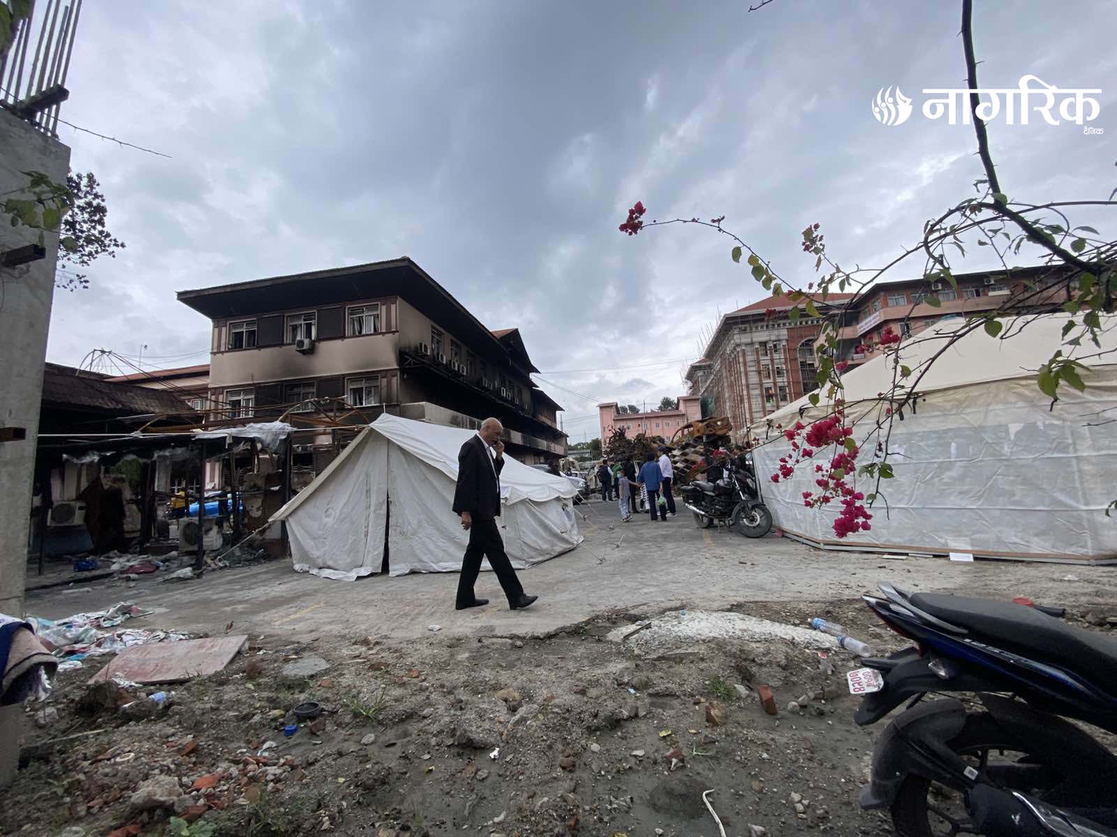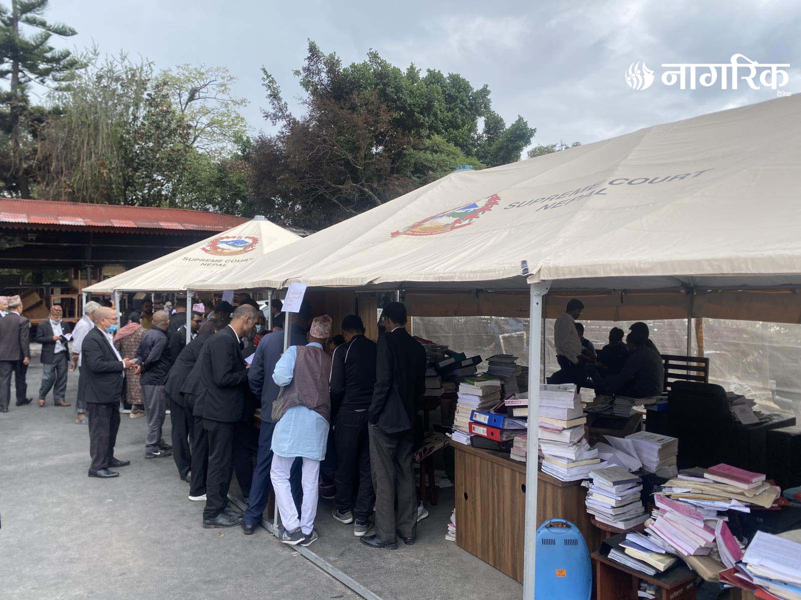 न्यायको मन्दिर भग्नावशेषमा परिणत भएपछि आइतबारदेखि कर्मचारीहरूले परिसरमा टेन्ट टाँगेर तारिख दिने र रिट दर्ता गर्ने काम थालेका छन्।