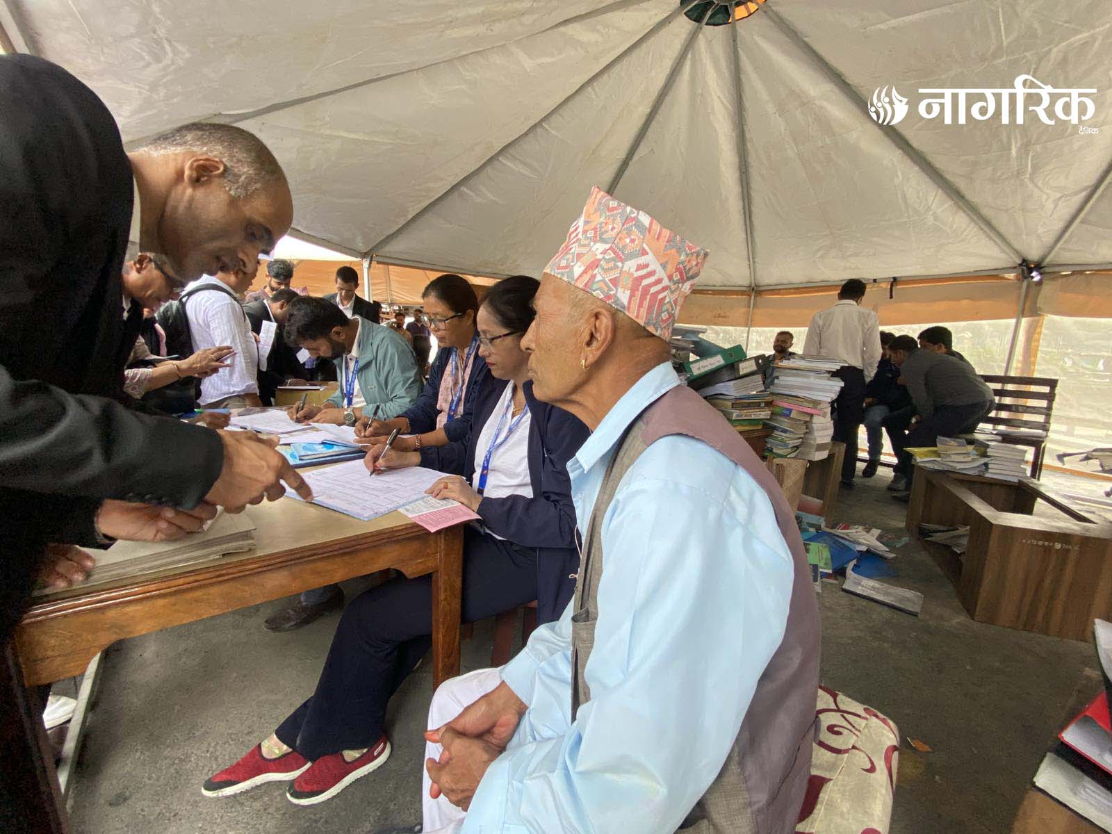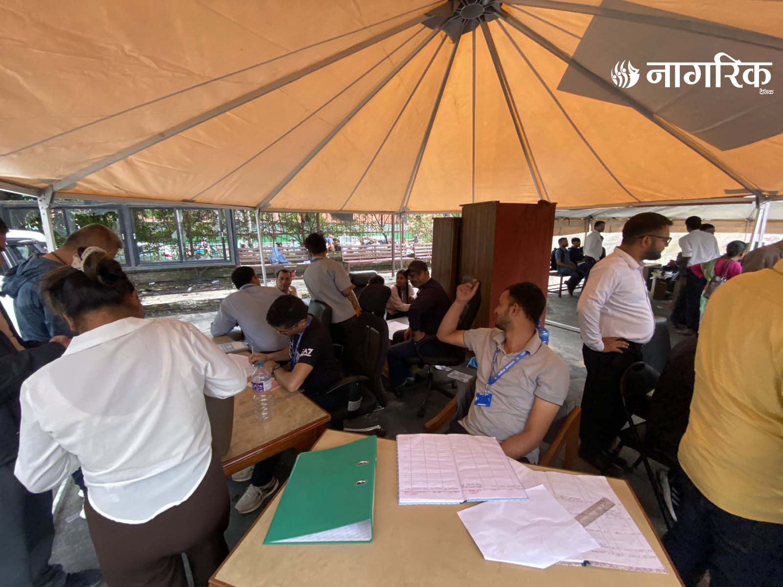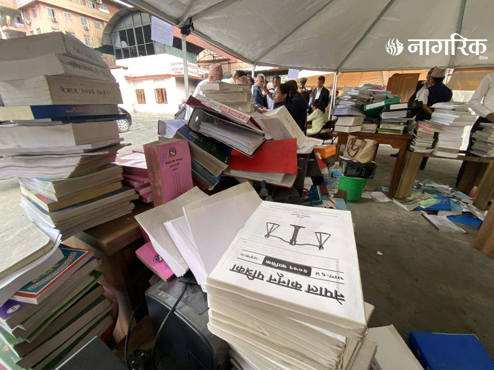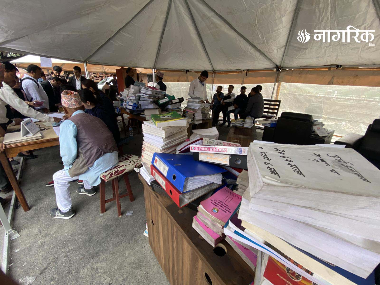 न्यायको मन्दिर भग्नावशेषमा परिणत भएपछि आइतबारदेखि कर्मचारीहरूले परिसरमा टेन्ट टाँगेर तारिख दिने र रिट दर्ता गर्ने काम थालेका छन्।