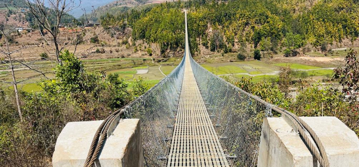 सस्पेन्सन ब्रिज डिभिजन ललितपुरमार्फत रु एक करोड ८४ लाखको लागतमा यहाँ झोलुङ्गे पुल निर्माण गरिएको हो। पुलको भारवहन क्षमता ७९९ जना मानिस अट्ने रहेको छ। पुल बनेसँगै घण्टौँ समय लगाएर यात्रा गर्नुपर्ने बाध्यता टरेको स्थानीयले बताएका छन्।