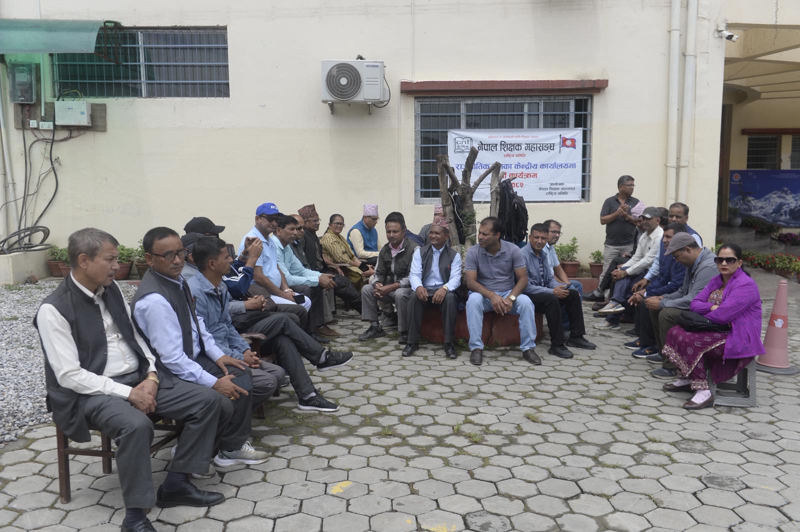 शिक्षकहरूको एक हुल टोली पार्टी कार्यालय च्यासल पुगेर बिहान ११ बजेदेखि दिउँसो १ बजेसम्म कार्यालय घेराउ गरेका थिए।