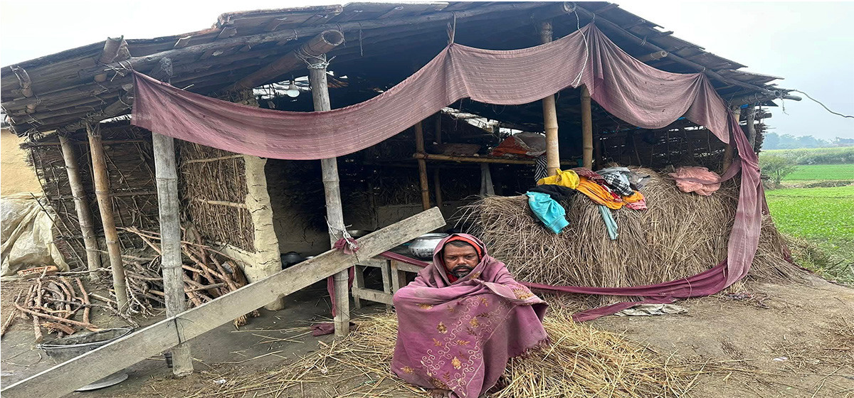 नजिकै चिथ्रा परेका पुराना कपडा जोडेर बनाइएको ओढ्ने छ। गोलबजार नगरपालिका ८ मुसहरी टोलका रामविलासा सदायको घरको दृश्य हो यो। यही छाप्रोमा चार छोराछोरीसहित उनी बस्छन्। एक सातादेखि चलेको शीतलहरले उनको परिवारका सदस्य कठ्यांग्रिएका छन्।