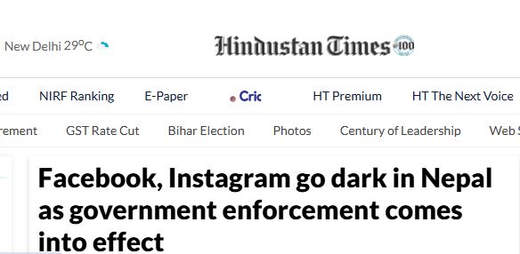हिन्दुस्तान टाइम्सले प्रयोगकर्ताहरूको अनुभवलाई जोड दिँदै फेसबुक र इन्स्टाग्राममा ब्राउजरबाट लग इन गर्न खोज्दा “केही गडबड भयो” वा “साइटमा पुग्न सकिएन” जस्ता सन्देश देखिएको जनाएको छ। काठमाडौंकी विश्वविद्यालय स्नातक मोनिका मल्ललाई उद्धृत गर्दै मोबाइल एप अझै चलिरहेको तर चाँडै बन्द हुने आशंका व्यक्त गरिएको छ। प्रयोगकर्ताहरू अन्य प्लेटफर्ममार्फत अद्यावधिक जानकारी खोजिरहेको हिन्दुस्तान टाइम्सले लेखेको छ।