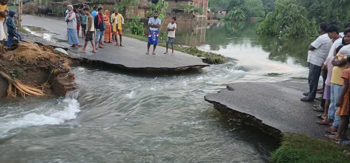 मध्यरौतहटलाई कलैया हुँदै वीरगंजसित जोड्ने मुख्य सडकलाई बाढीले भत्काएको छ। रौतहटको मौलापुर नगरपालिका अन्तर्गत सोनरनियामा बाढीले सडकलाई भत्काएर पानी बग्न थालेपछि यातायात अवरुद्ध भएको हो।