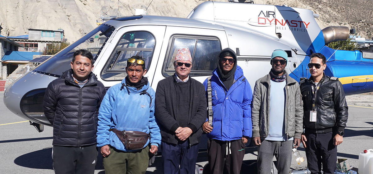 मुस्ताङ र डोल्पाको सिमाना छार्का भेरोलको हिउँमा फसेका दुई जना नेपाली पर्यटकको आज बिहान हेलिकप्टरमार्फत उद्धार गरिएको छ। जिल्ला प्रशासन कार्यालय मुस्ताङको समन्वयमा इन्द्रबक्स गणको नेपाली सेनाको सहयोगमा एयर डाइनोष्टिक हेलिकप्टरमार्फत सकुशल उद्धार गरिएको हो।
